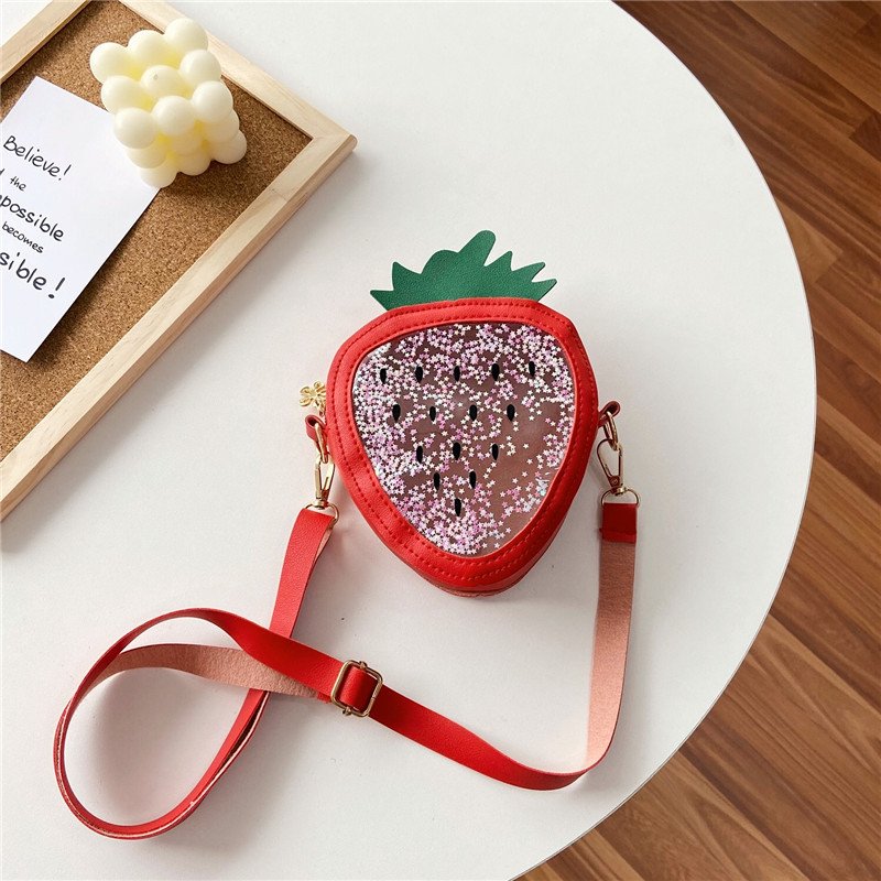 Kids Girls Casual Cute Cartoon Strawberry Pattern Crossbody Bag