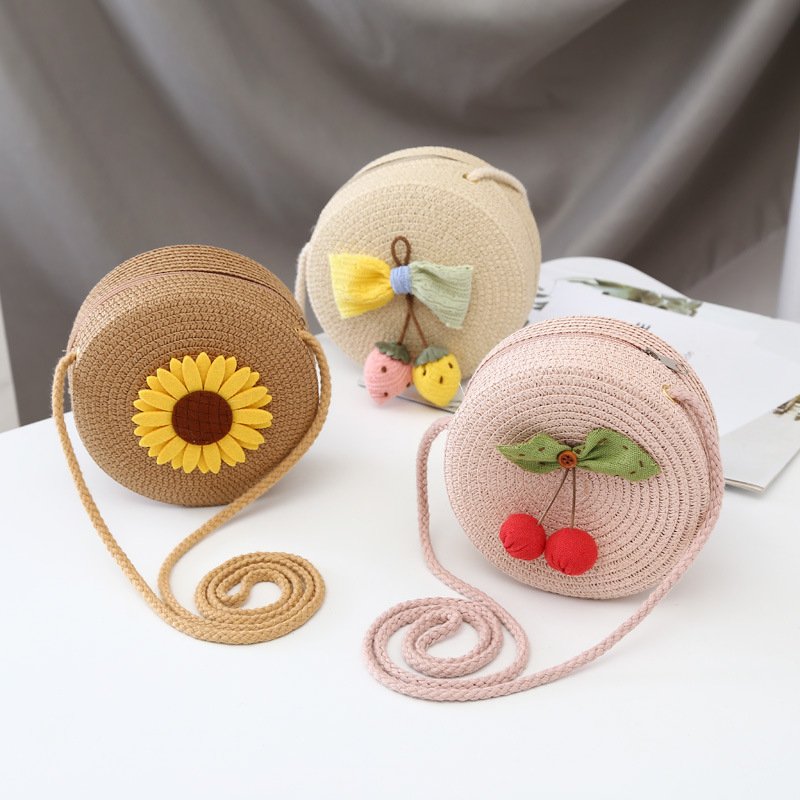 Kids Girls Casual Cute Flower Bow Woven Crossbody Bag