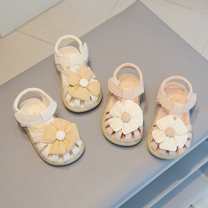 Kids Girls Casual Cute Flower Velcro Flat Sandals