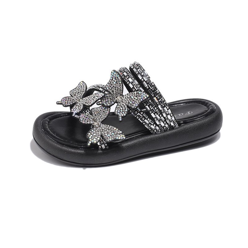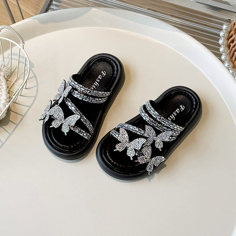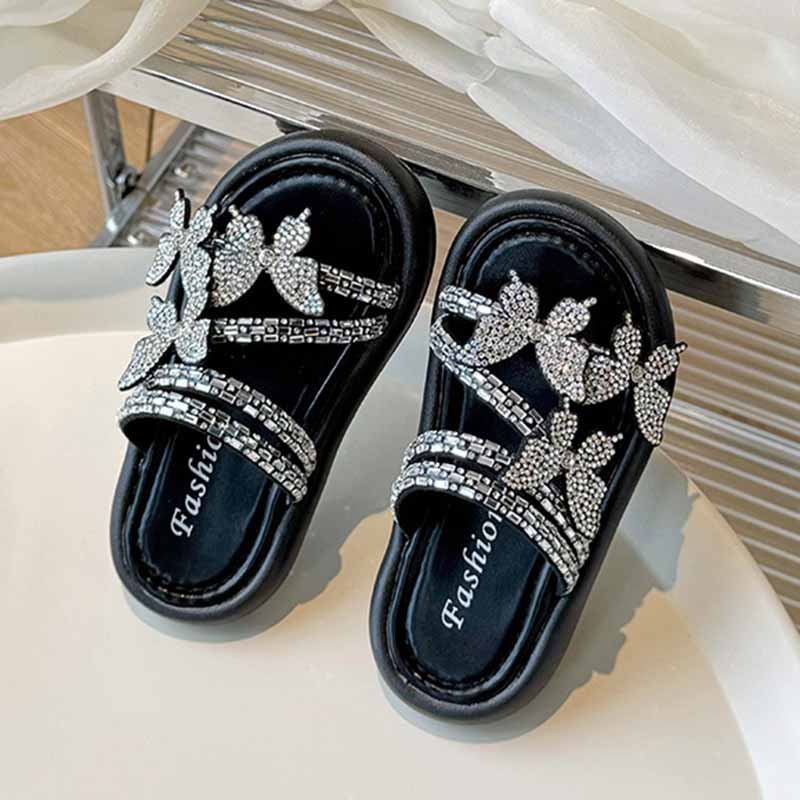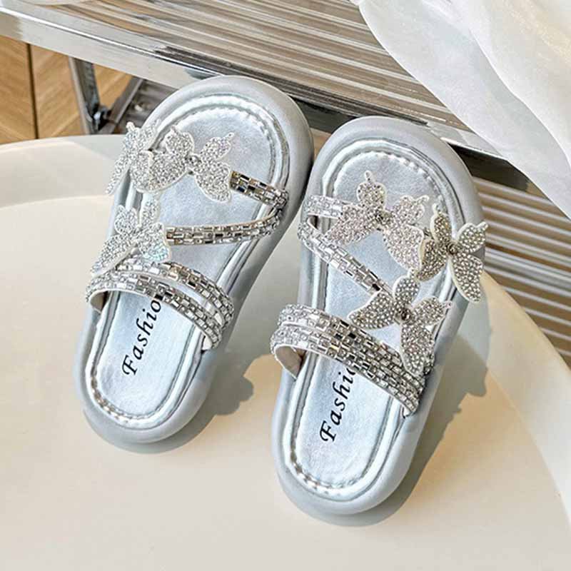 Kids Girls Casual Cute Rhinestone Butterfly Flat Slippers