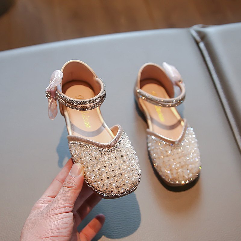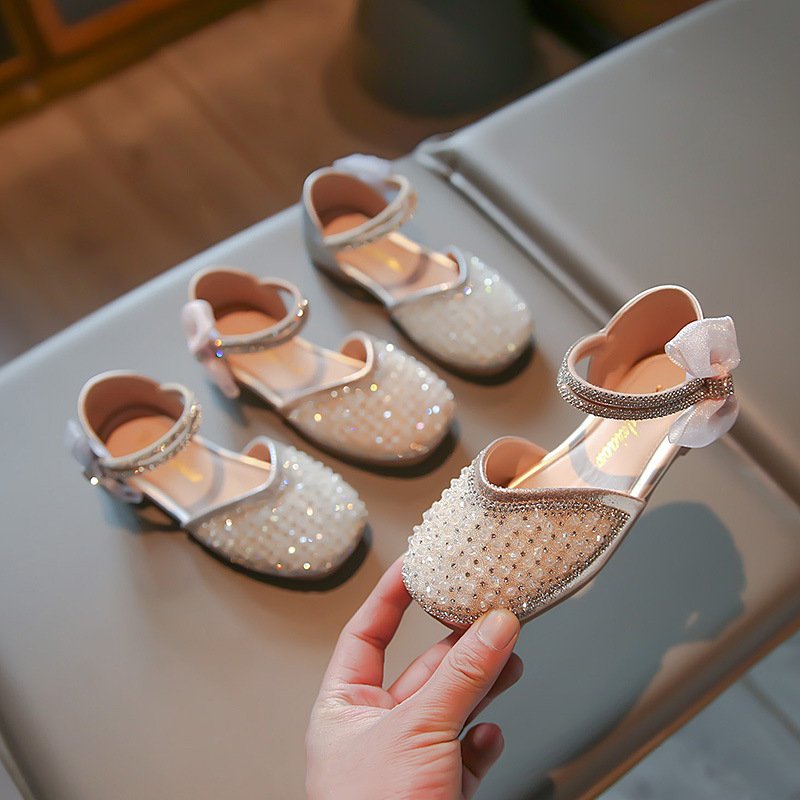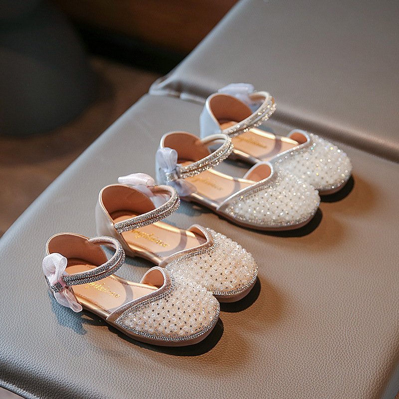 Kids Girls Casual Cute Round-Toe Rhinestone Bows Velcro Flat Shoes