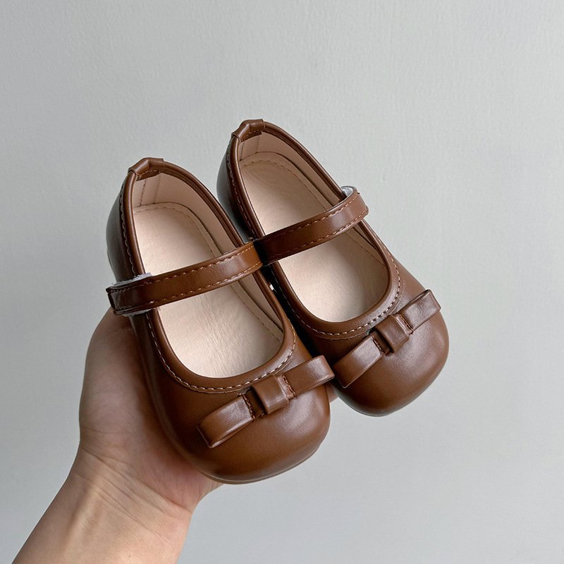 Kids Girls Casual Cute Square-Toe Solid Color Bows Velcro Flat Shoes