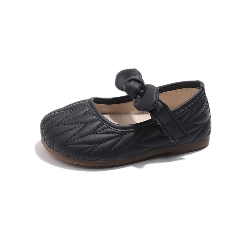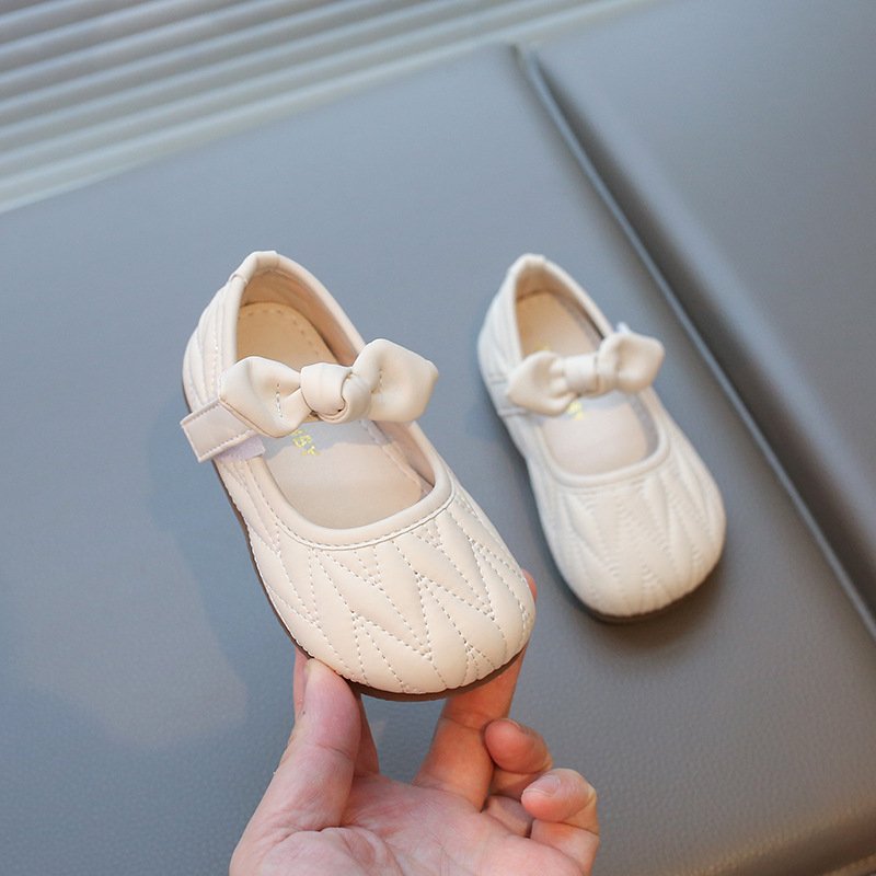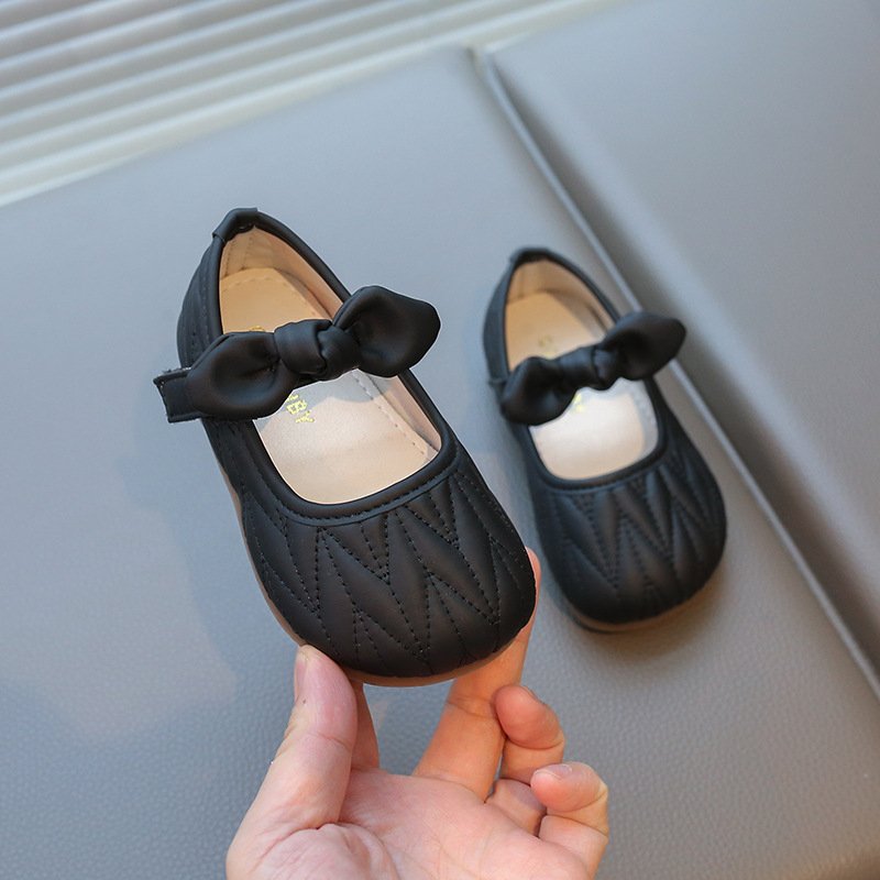 Kids Girls Casual Cute Square-Toe Velcro Bow Flat Shoes