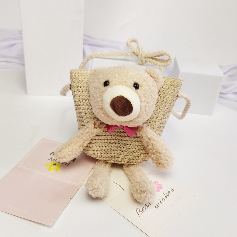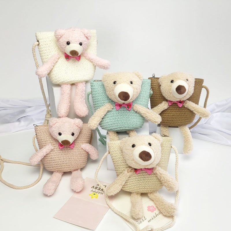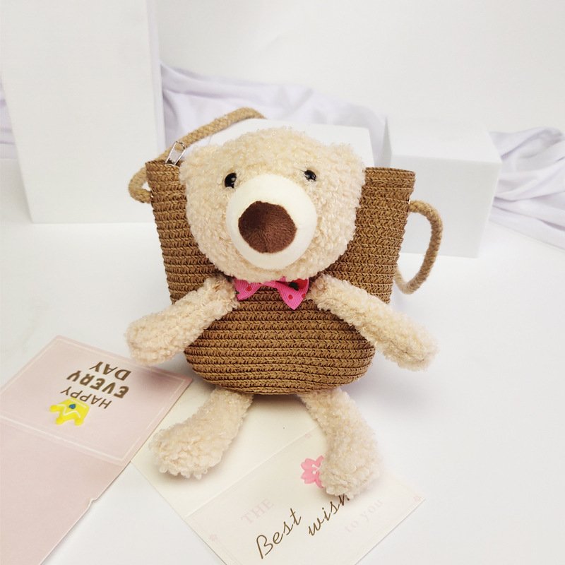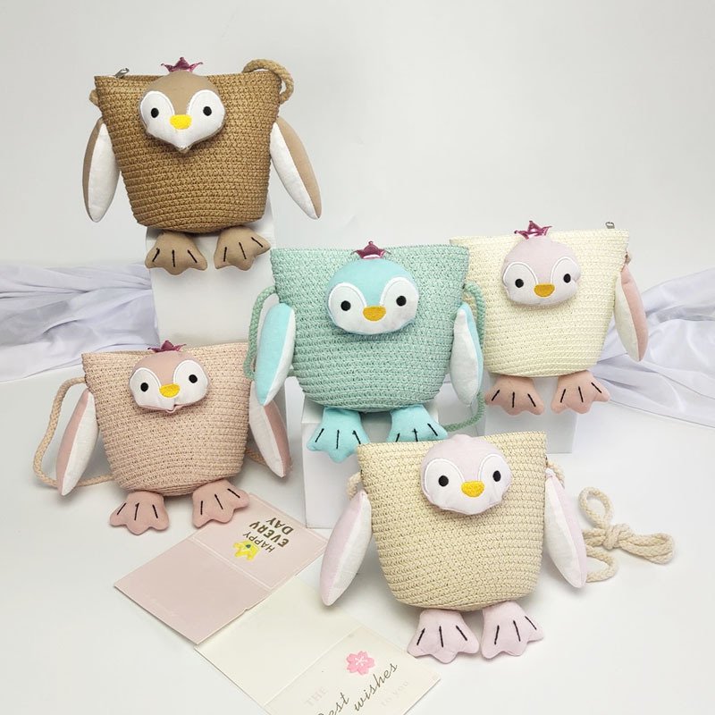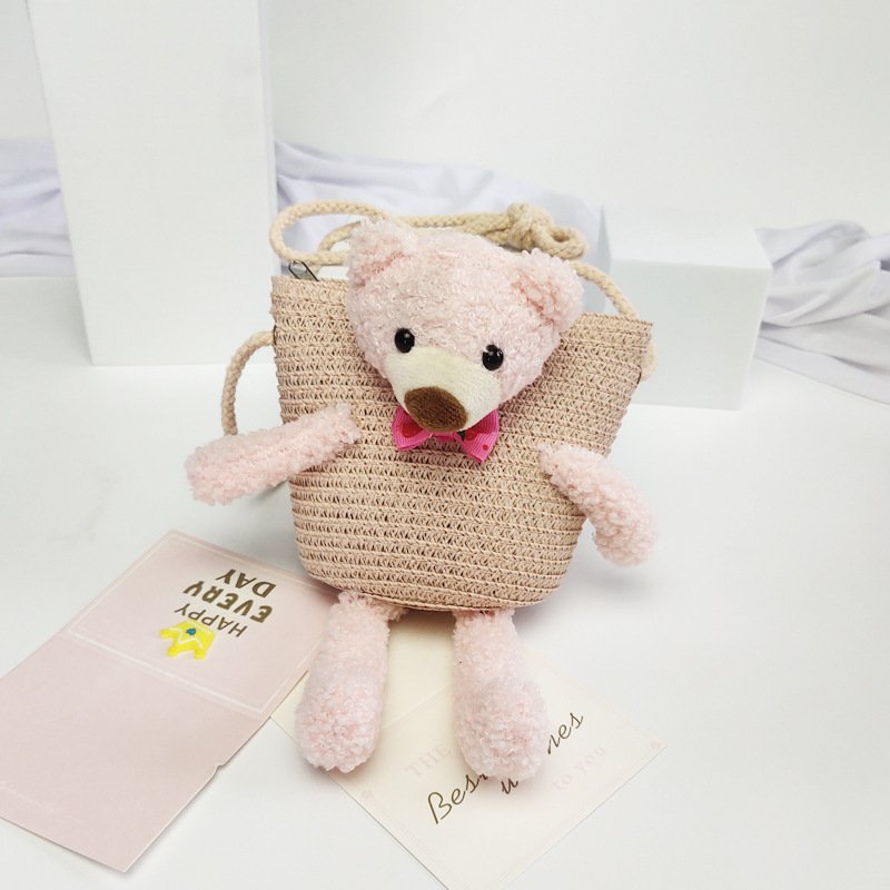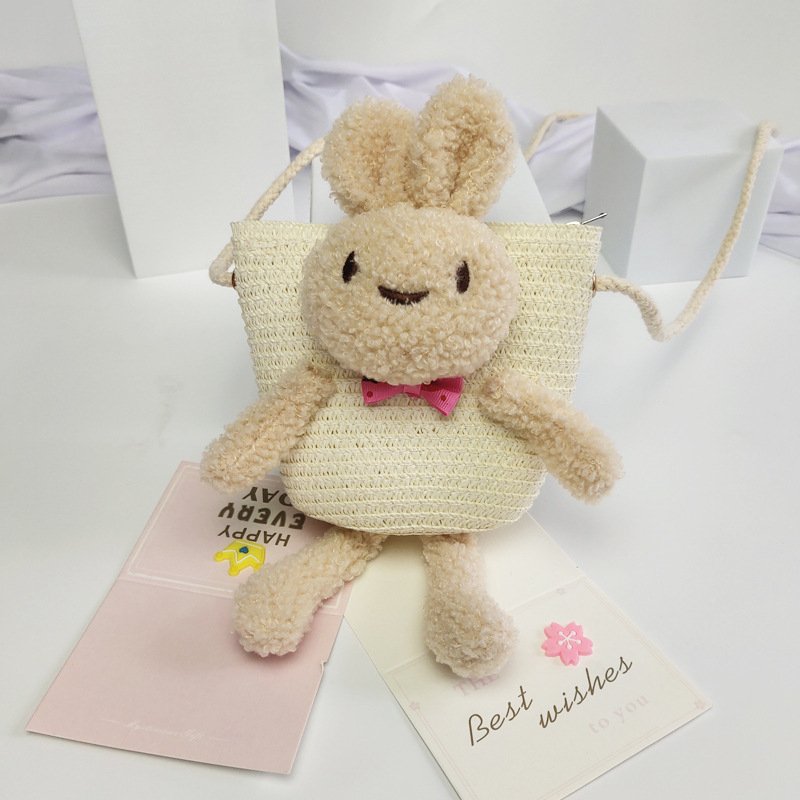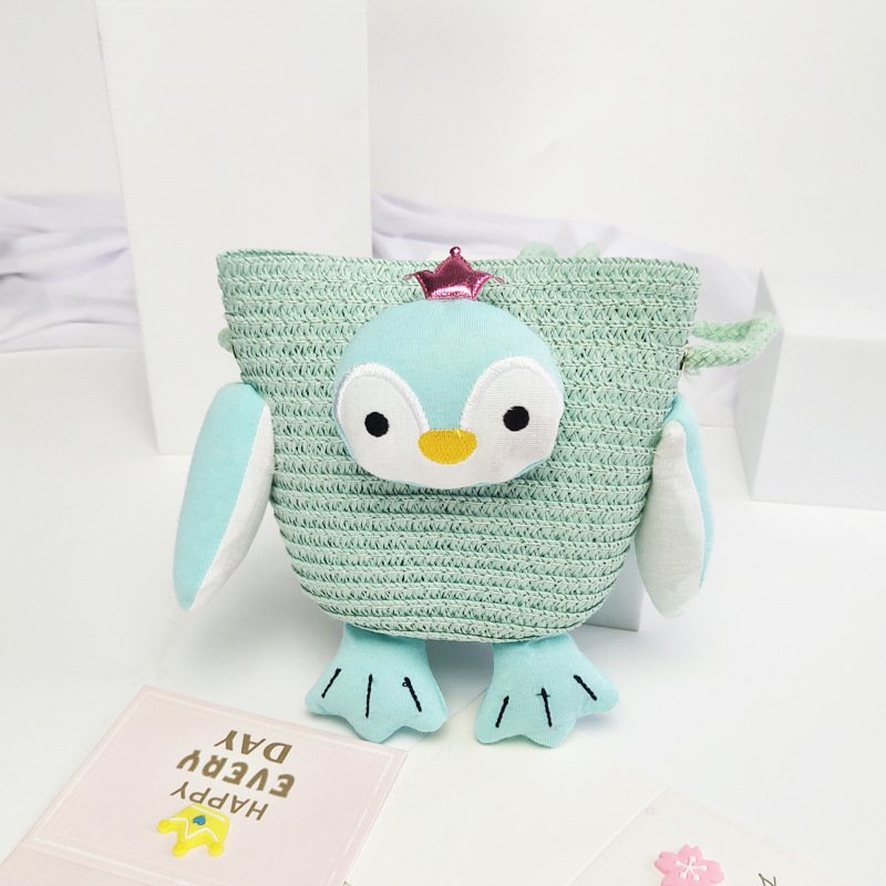 Kids Girls Casual Cute Sweet Cartoon Animal Straw Woven Crossbody Bag