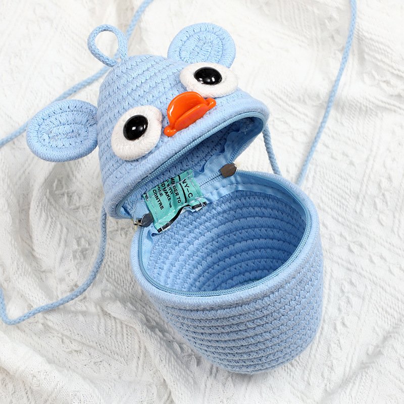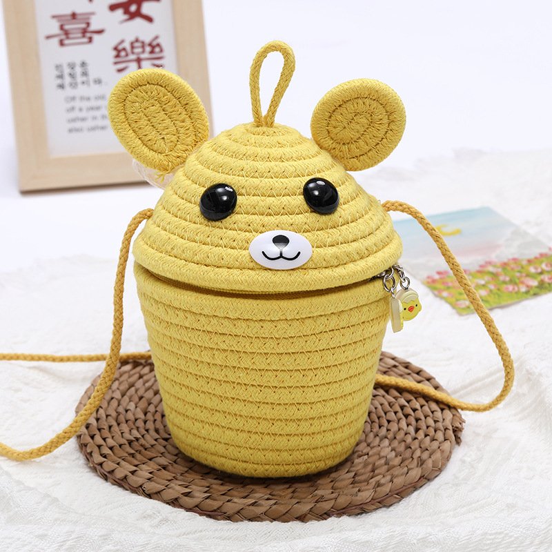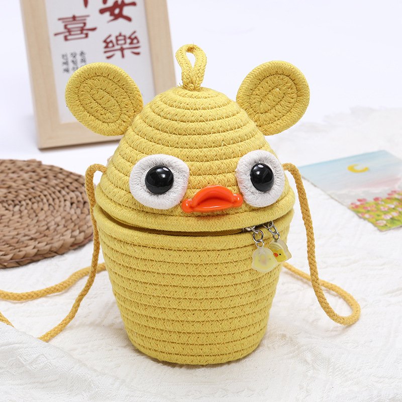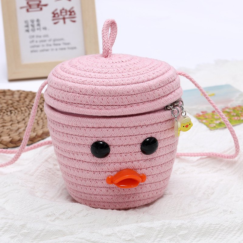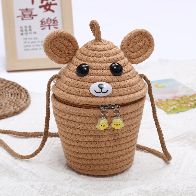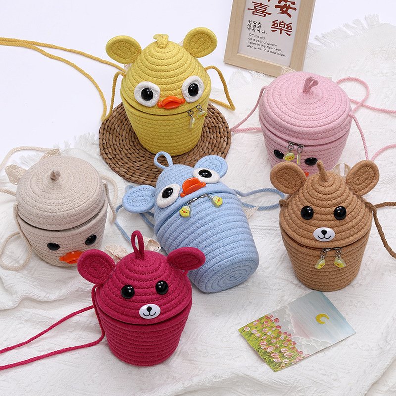 Kids Girls Casual Cute Sweet Cartoon Animal Straw Woven Crossbody Bucket Bag