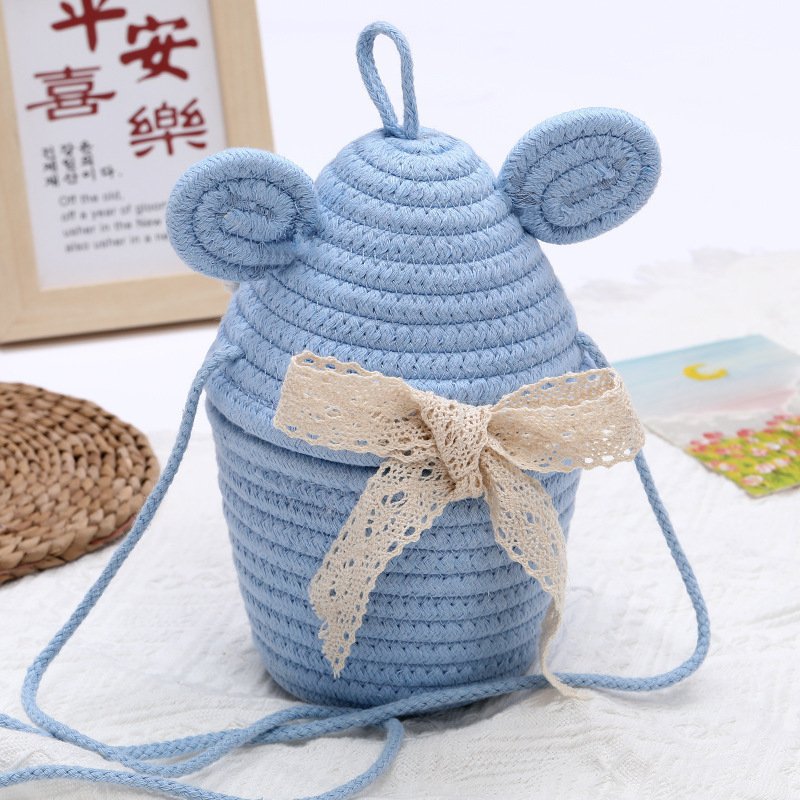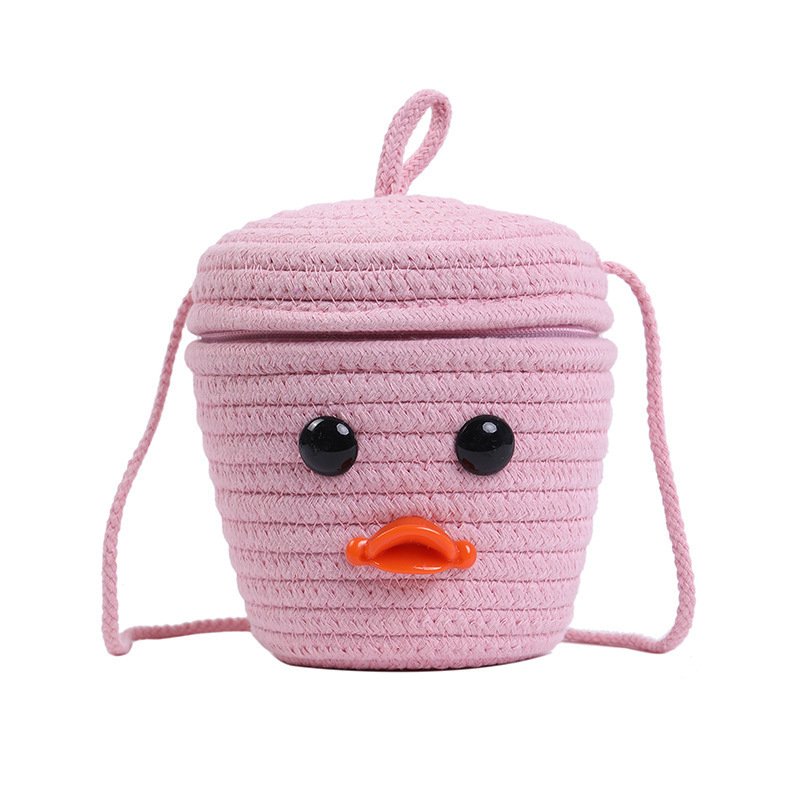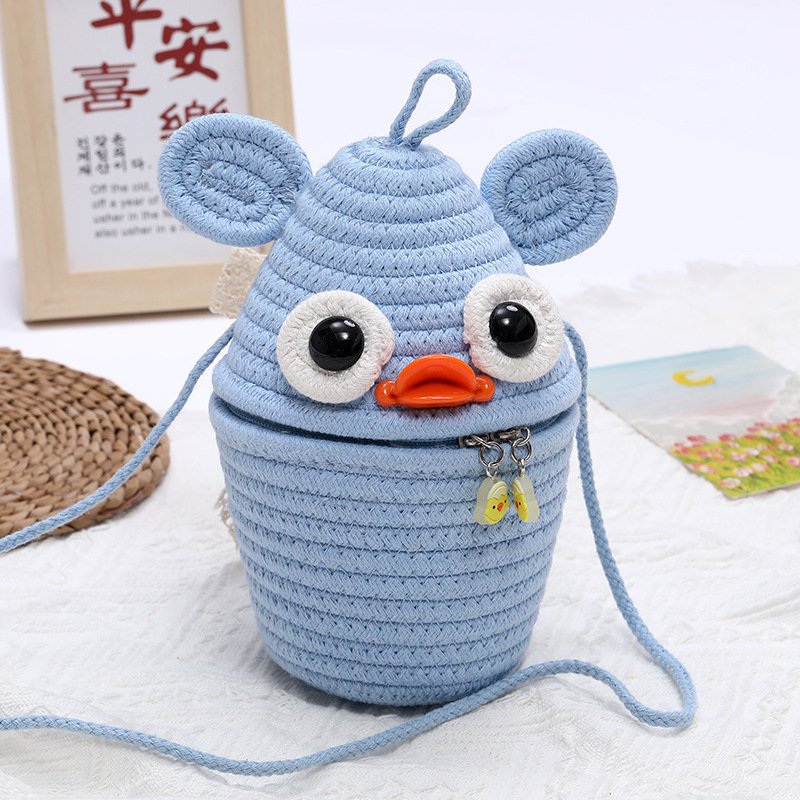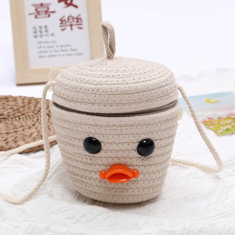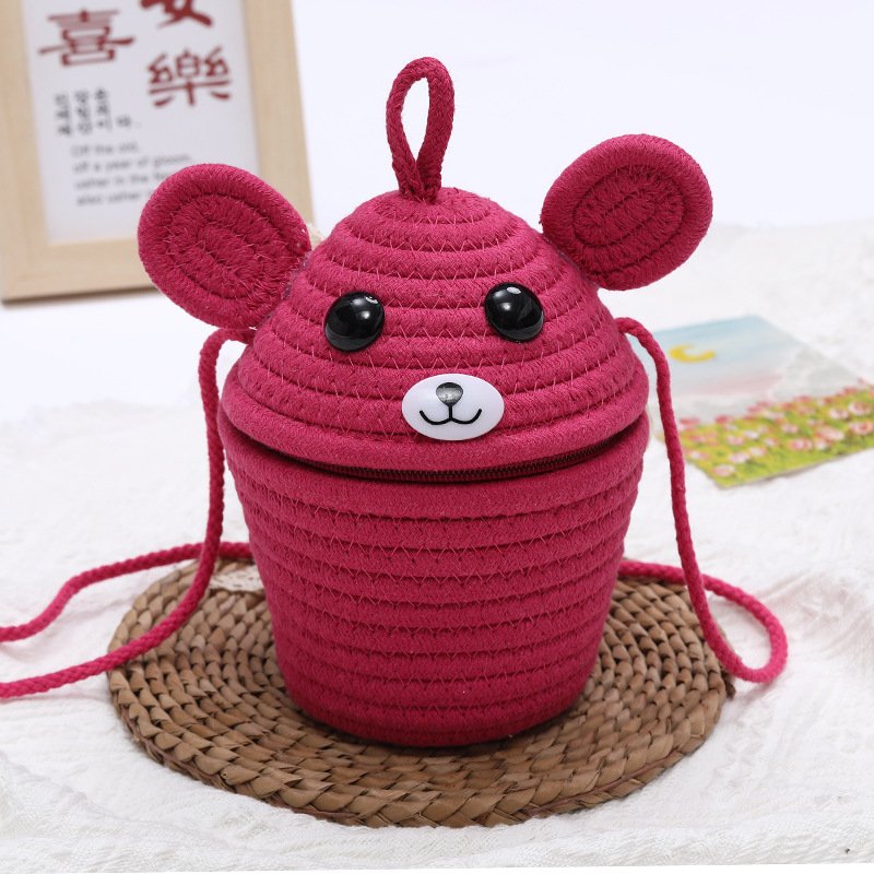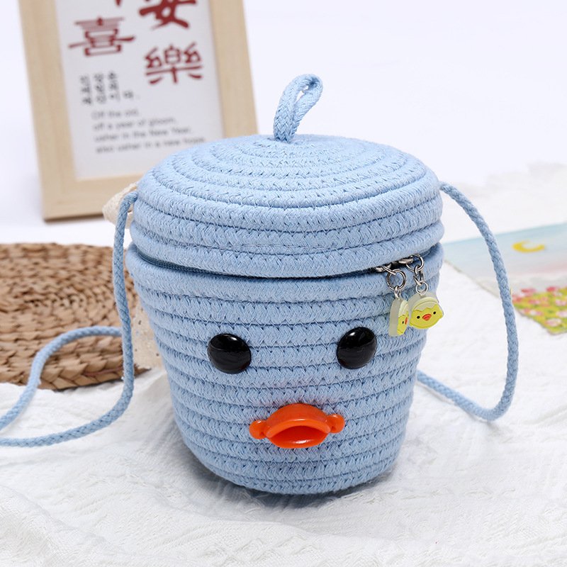 Kids Girls Casual Cute Sweet Cartoon Animal Straw Woven Crossbody Bucket Bag