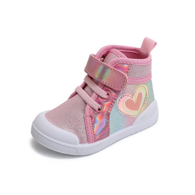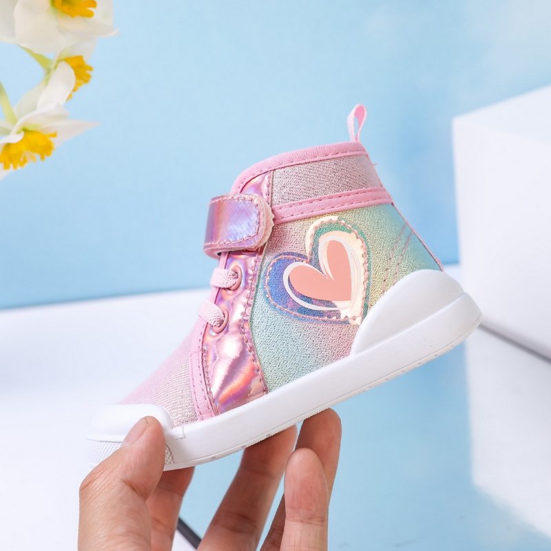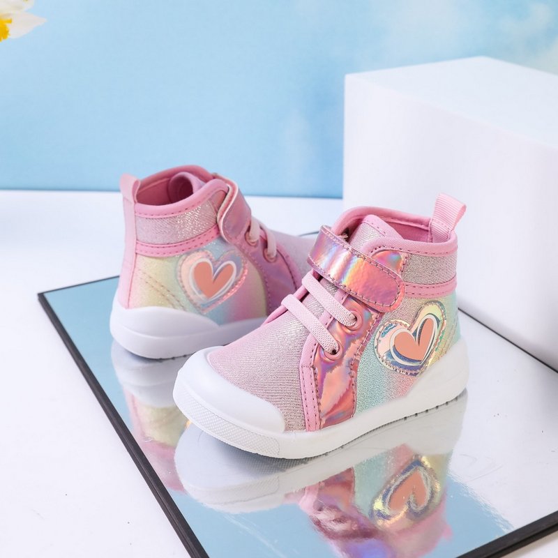 Kids Girls Casual Cute Sweet Heart Shaped Pattern Velcro Lace-Up Flat Canvas Sneakers