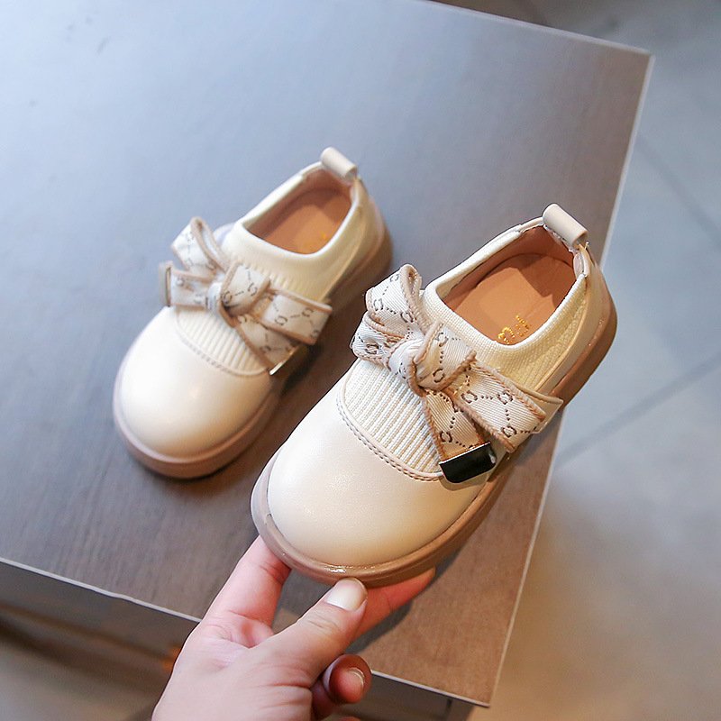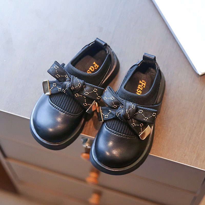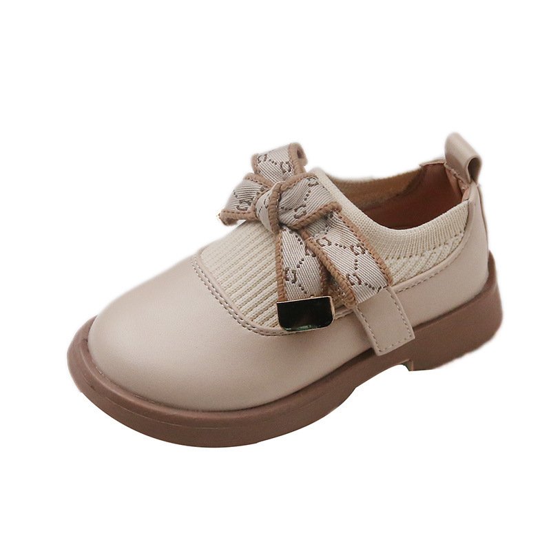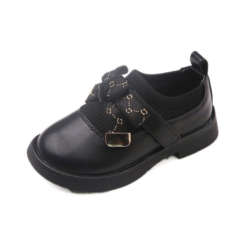 Kids Girls Casual Preppy Bow Slip On Low Heel PU Shoes