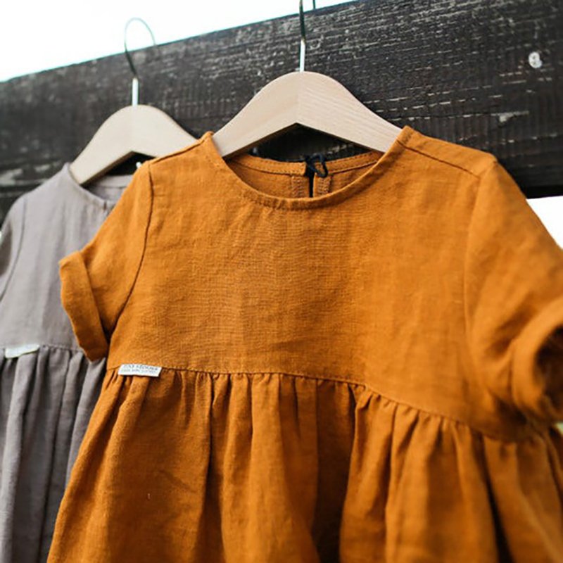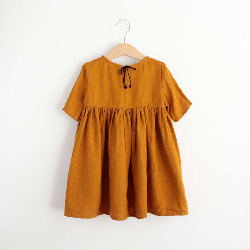 Kids Girls Casual Round Neck Short Sleeve Solid Color Dress