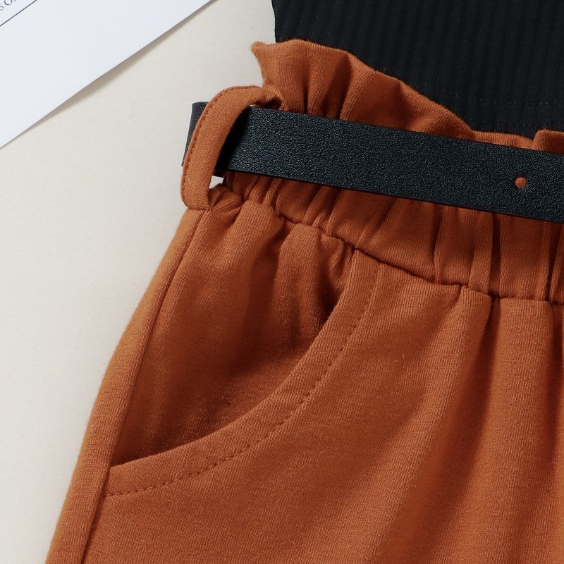 Kids Girls Casual Round Neck Sleeveless Cut Out Solid Color Top And Elastic Pants With Waist Pack Set