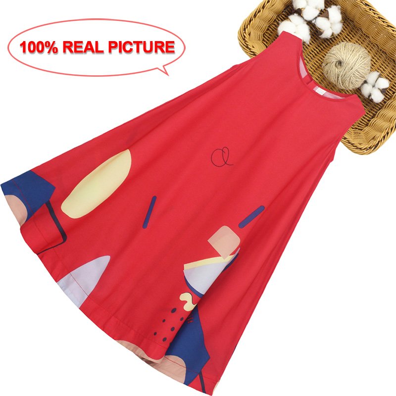 Kids Girls Casual Round Neck Sleeveless Irregular Geometric Pattern Loose Dress