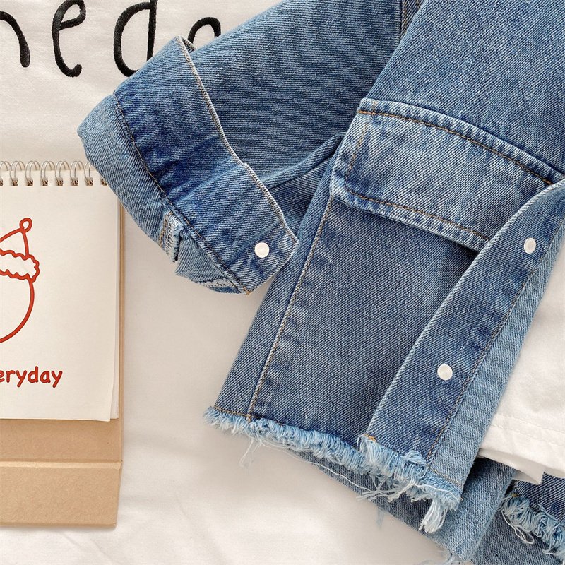 Kids Girls Casual Solid Color Lapel Long Sleeve Single-breasted Denim Coat