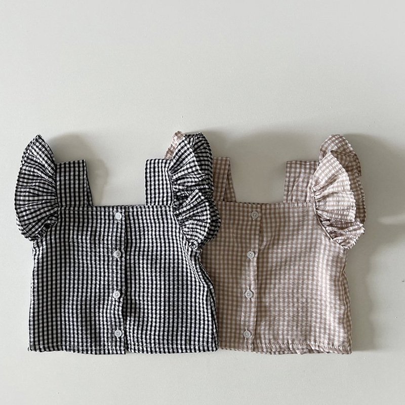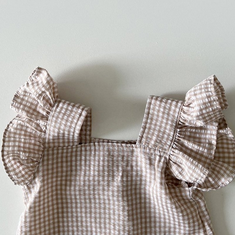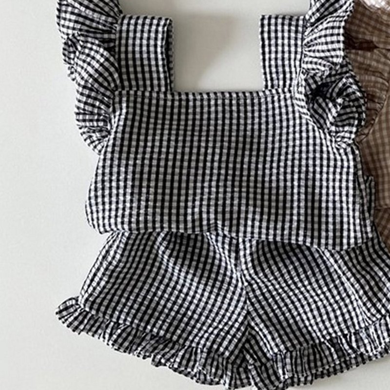 Kids Girls Casual Square Neck Ruffled Plaid T-Shirt And Shorts Set
