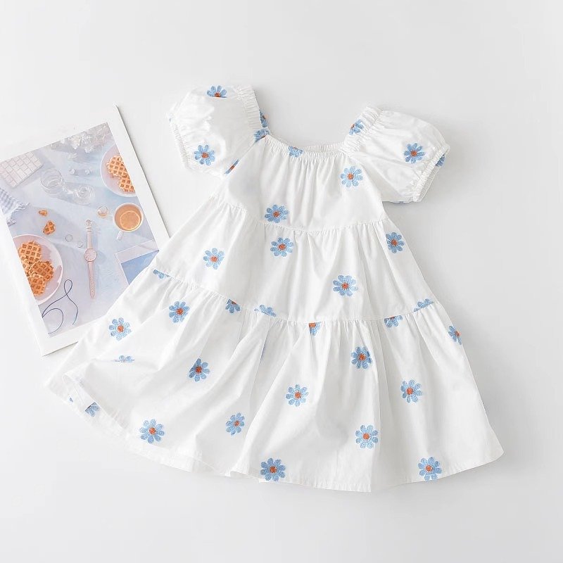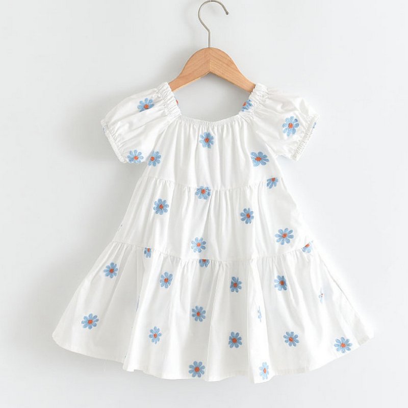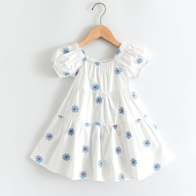 Kids Girls Casual Square Neck Short Sleeve Daisy All Over Print Dress