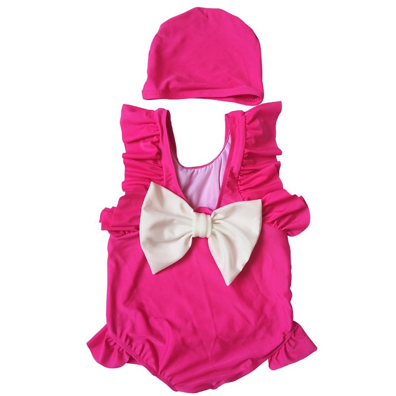 Kids Girls Cute Big Bow Design Backless One Piece Swimwear