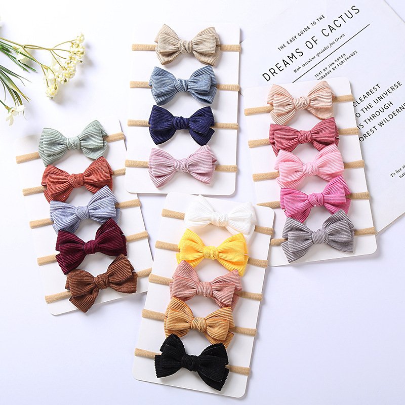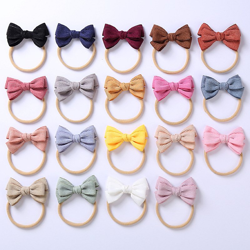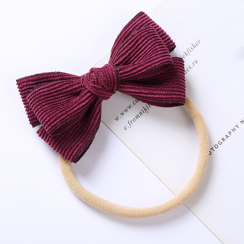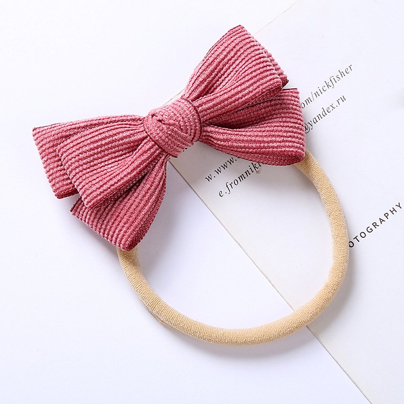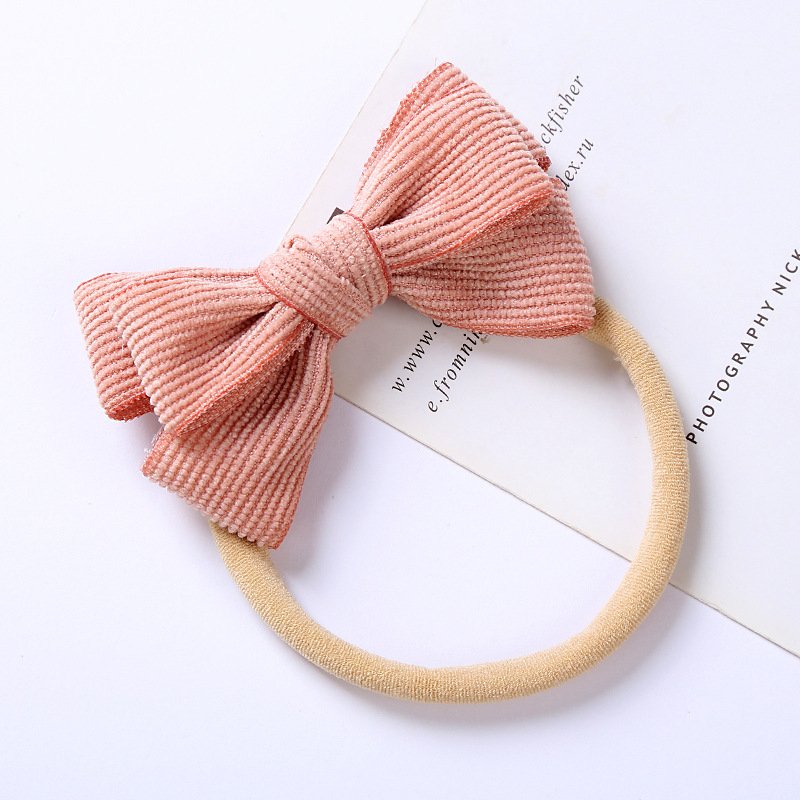 Kids Girls Cute Bow Corduroy Double Nylon Socks Hair Band