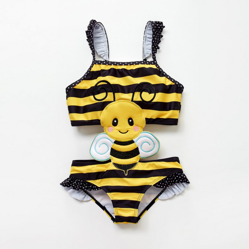 Kids Girls Cute Cartoon Animal Bee Cut Out One Piece Swimwear