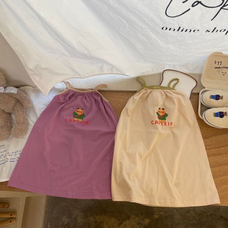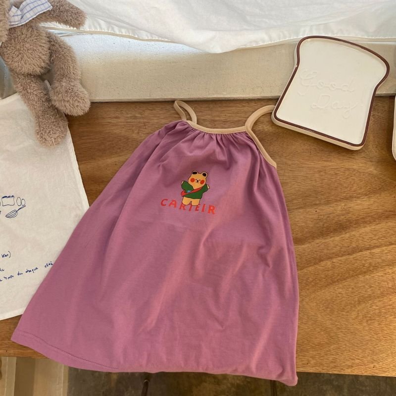 Kids Girls Cute Cartoon Pattern Sleeveless Loose Slip Dress