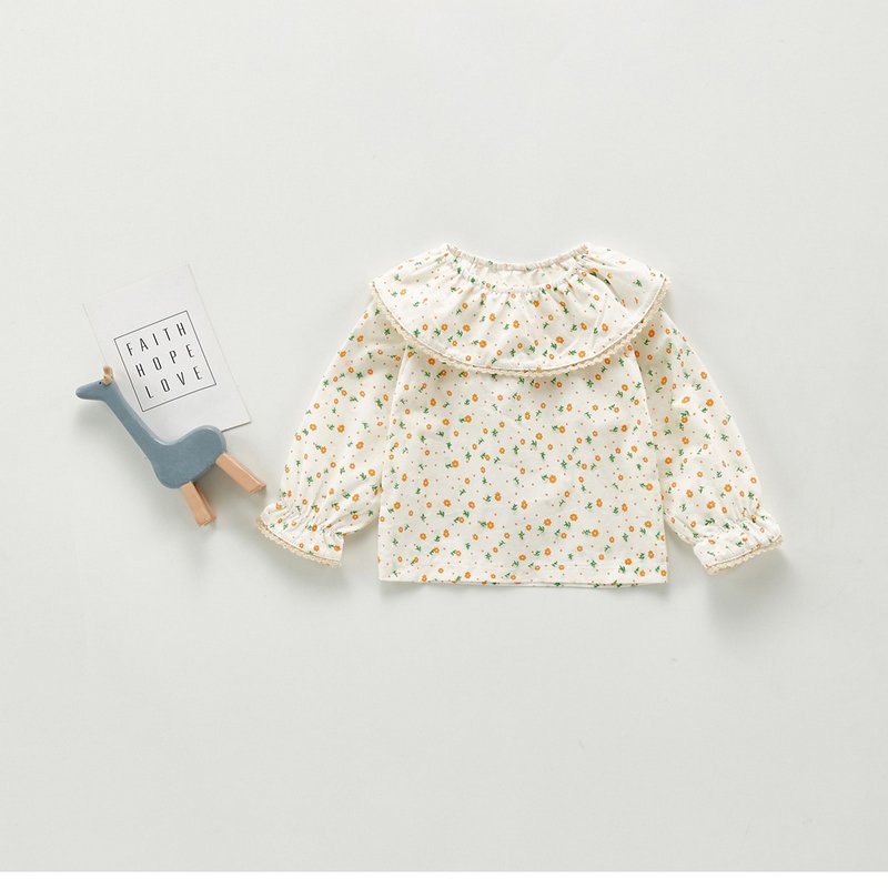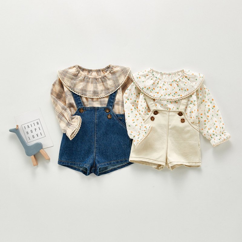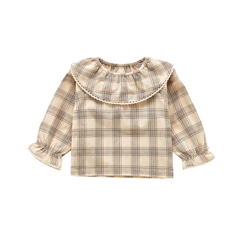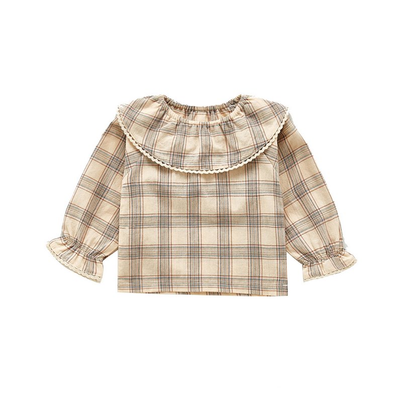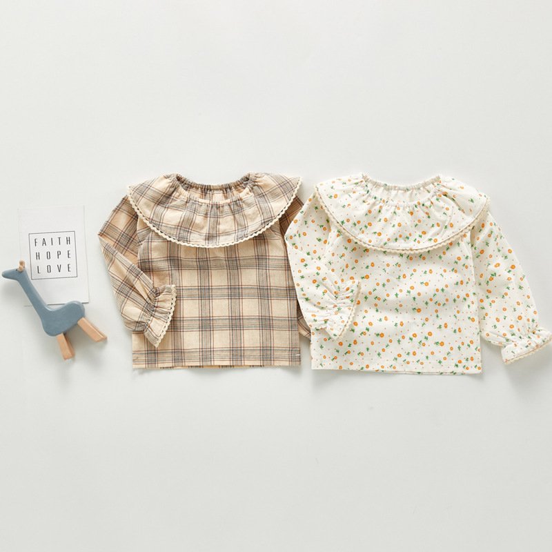 Kids Girls Cute Doll Collar Long Sleeve Plaid Floral All Over Print Blouse