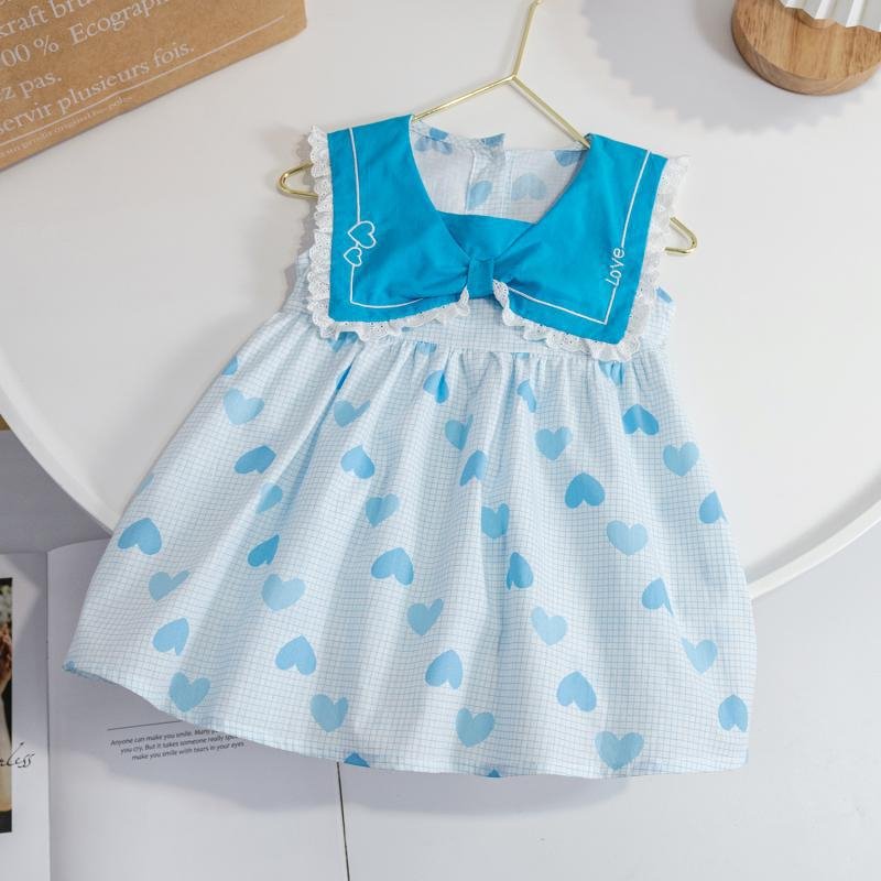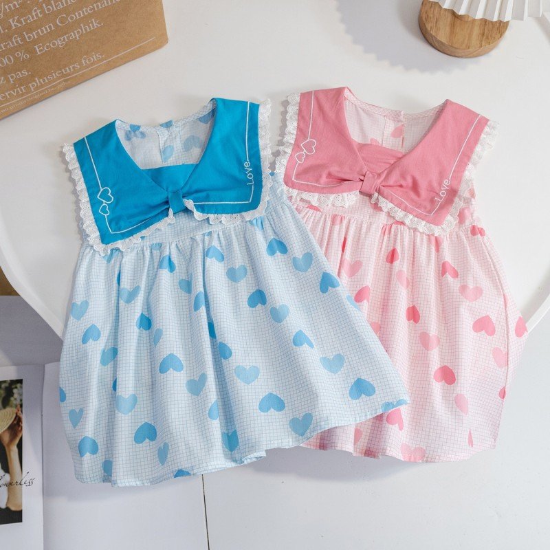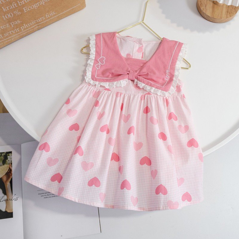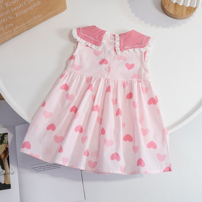 Kids Girls Cute Lace Desig Big Lapel Sleeveless Heart All Over Print Dress