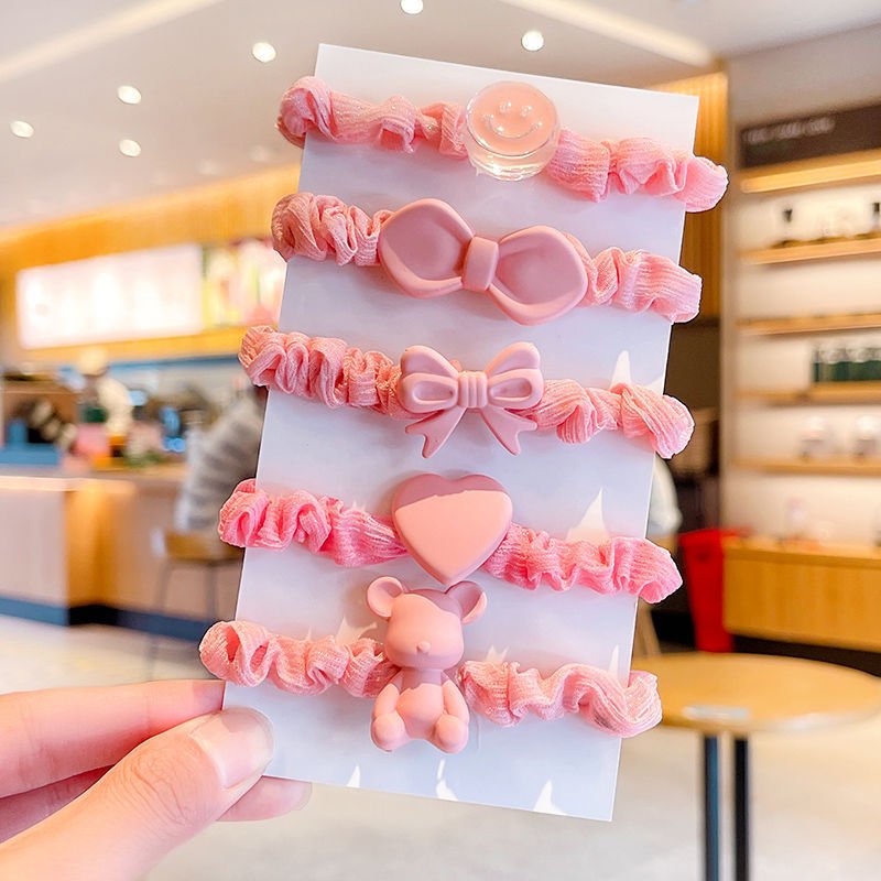 • Pink Series Combination Hair Ring 5 PCS Set – One Size