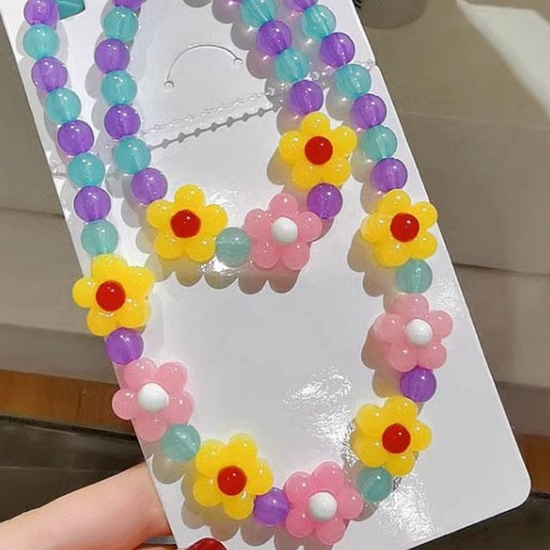 Kids Girls Cute Sweet Flower Acrylic Jewelry Set