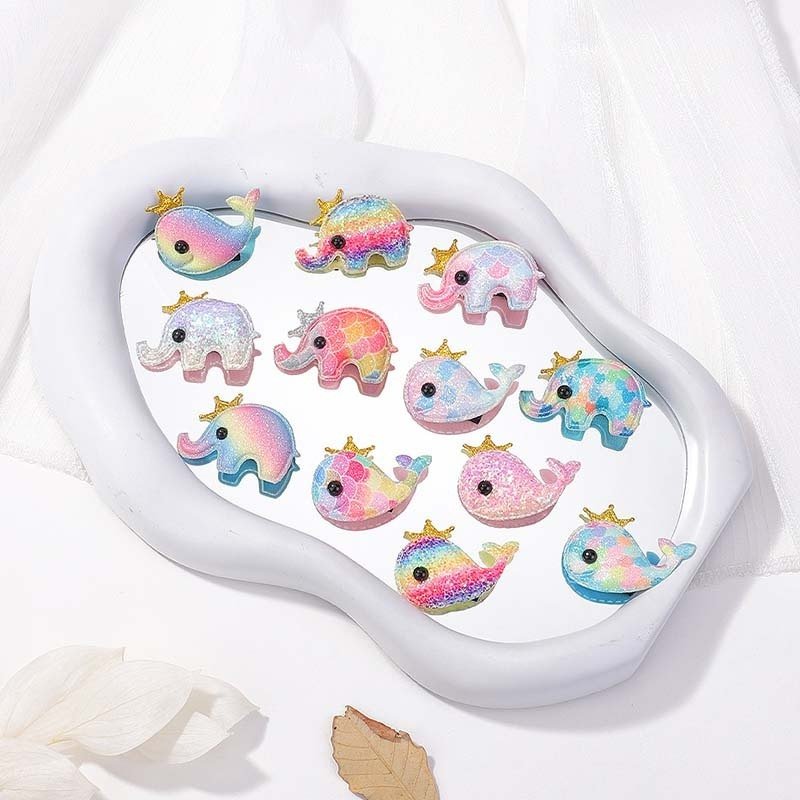 Kids Girls Cute Sweet Gradient Color Sequins Cartoon Whale Elephant Pattern Hairpin