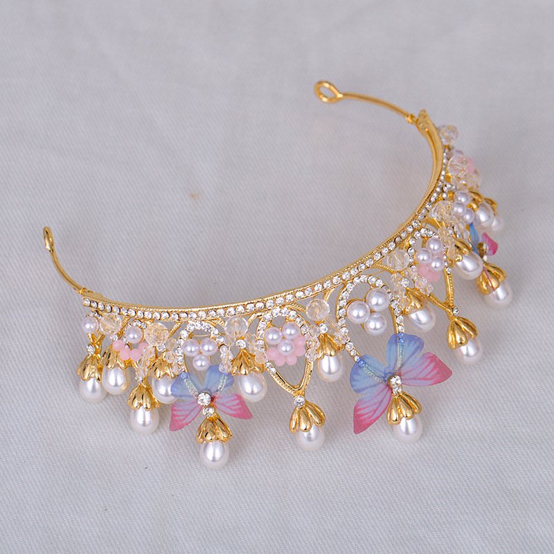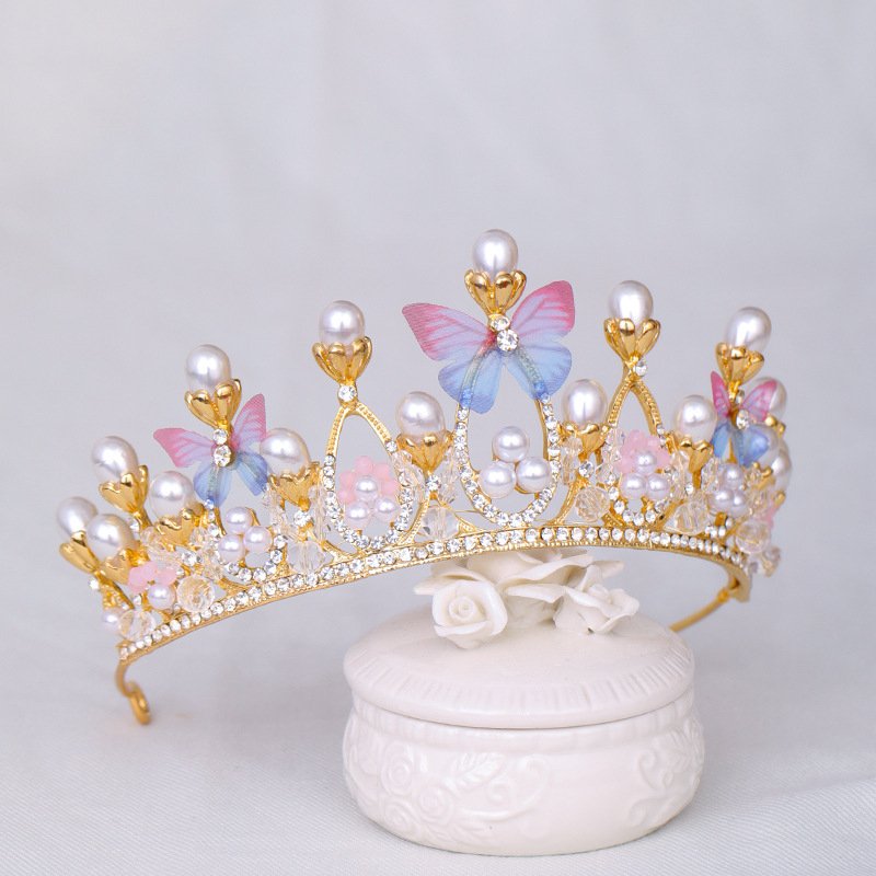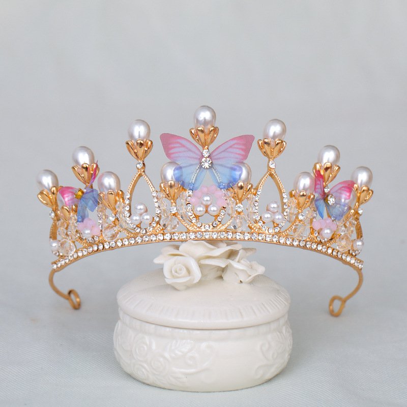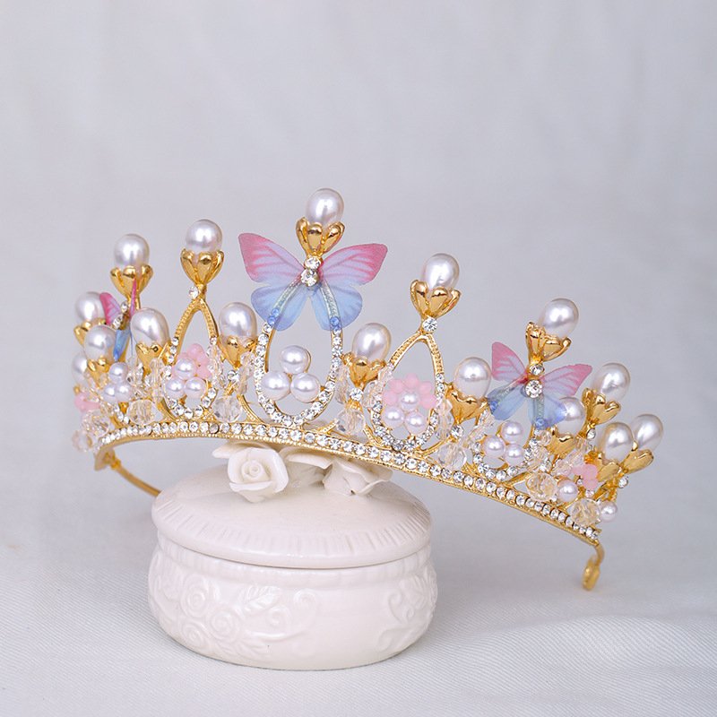 Kids Girls Cute Sweet Party Crown Rhinestone Butterfly Pearl Hairband
