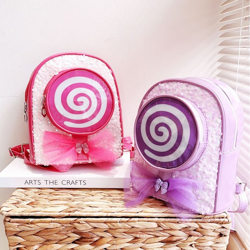 Kids Girls Cute Sweet Sequins Bow Lollipop Backpacks Bag