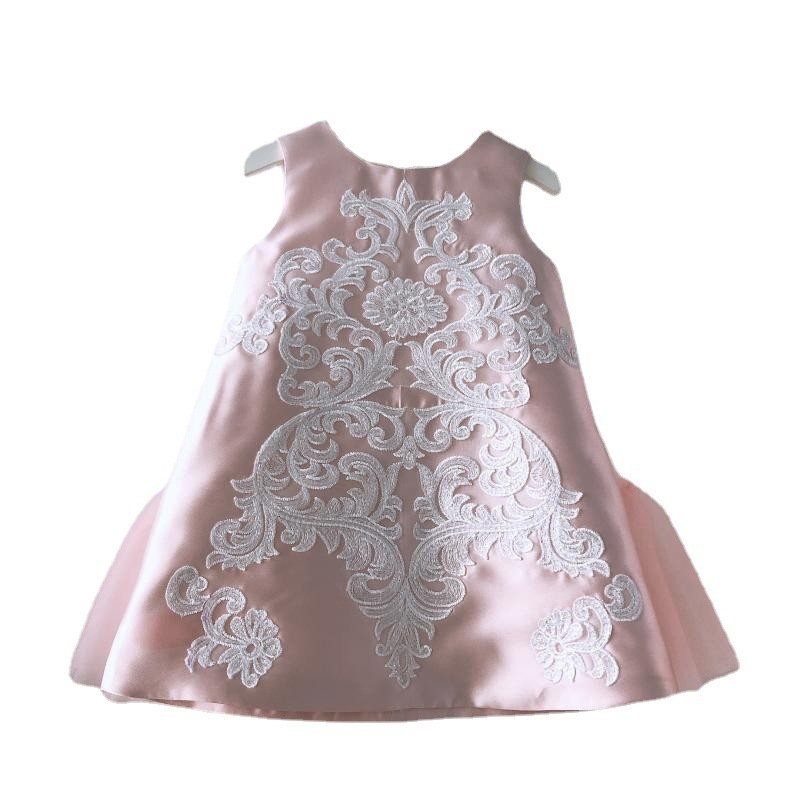Kids Girls Elegant Round Neck Sleeveless Jacquard Design Mesh Spliced Princess Party Dress