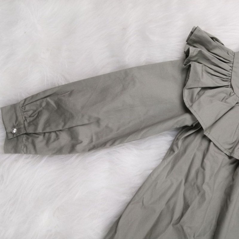 Kids Girls Elegant Solid Color Ruffled Round Neck Long Sleeve Casual Princess Dress