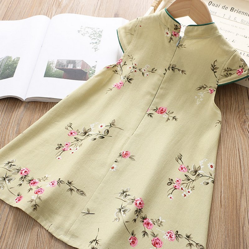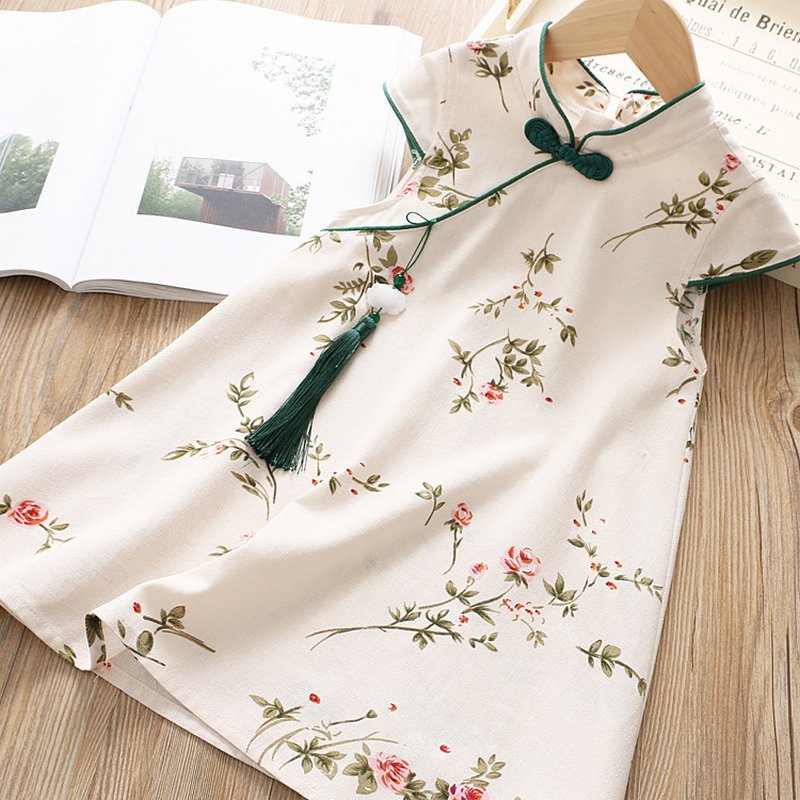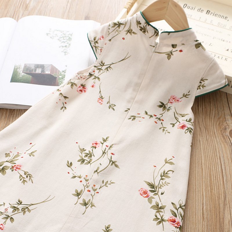 Kids Girls Ethnic Flower Pattern Sleeveless Elegant Cheongsam