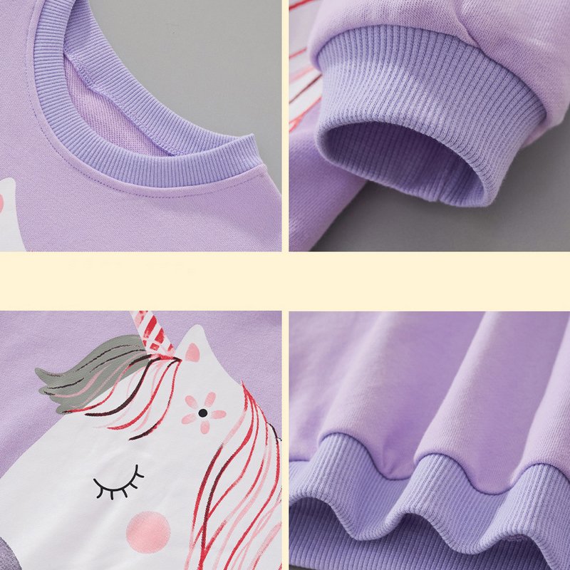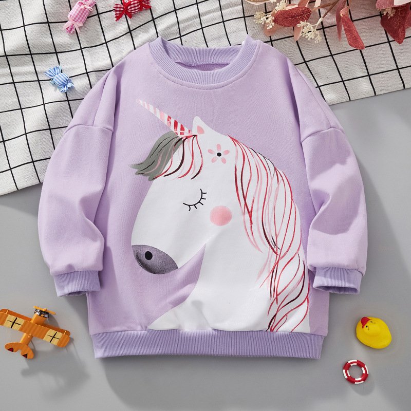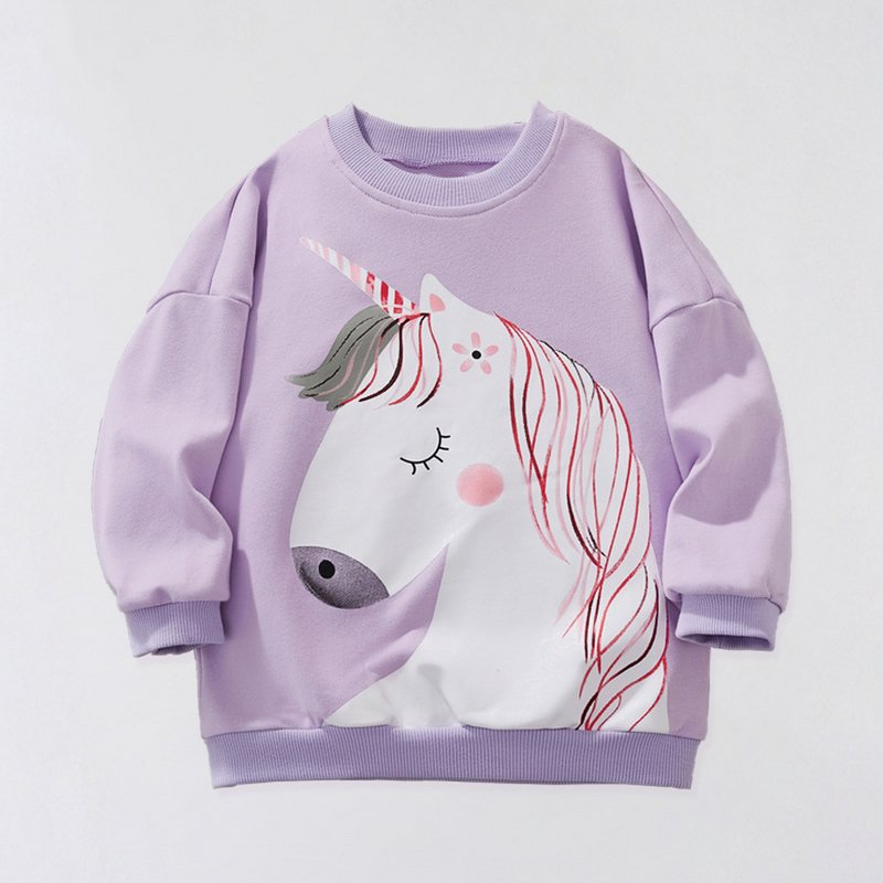 Kids Girls Fashion Autumn Cartoon Unicorn Printed Long-Sleeve Loose Sweatshirt