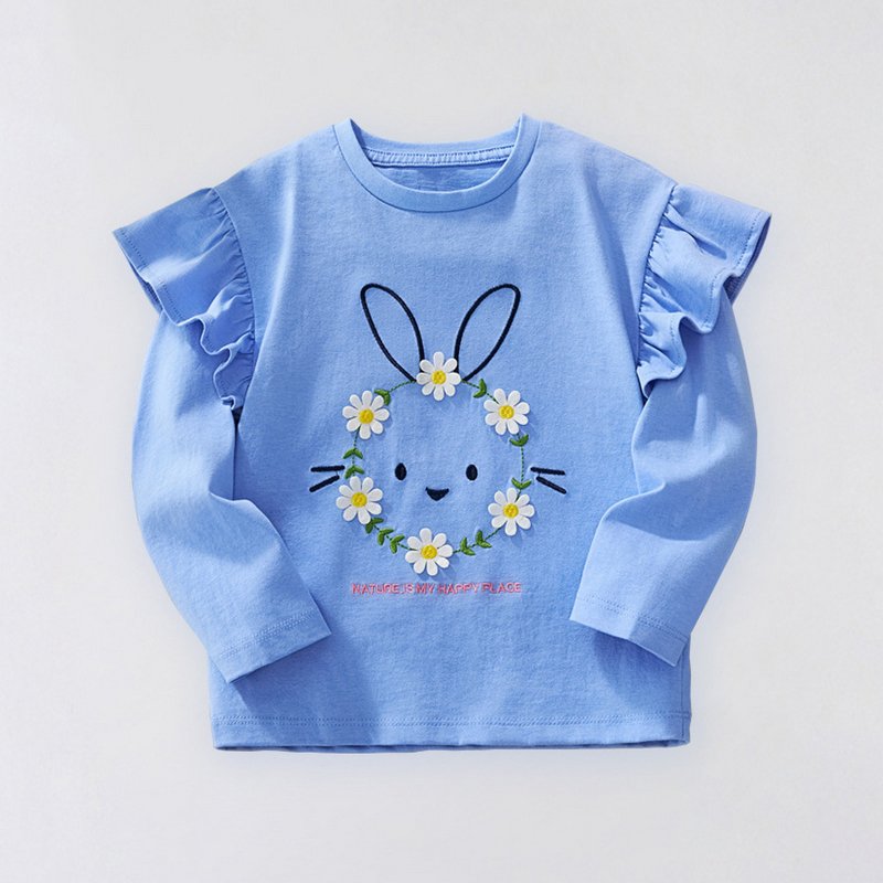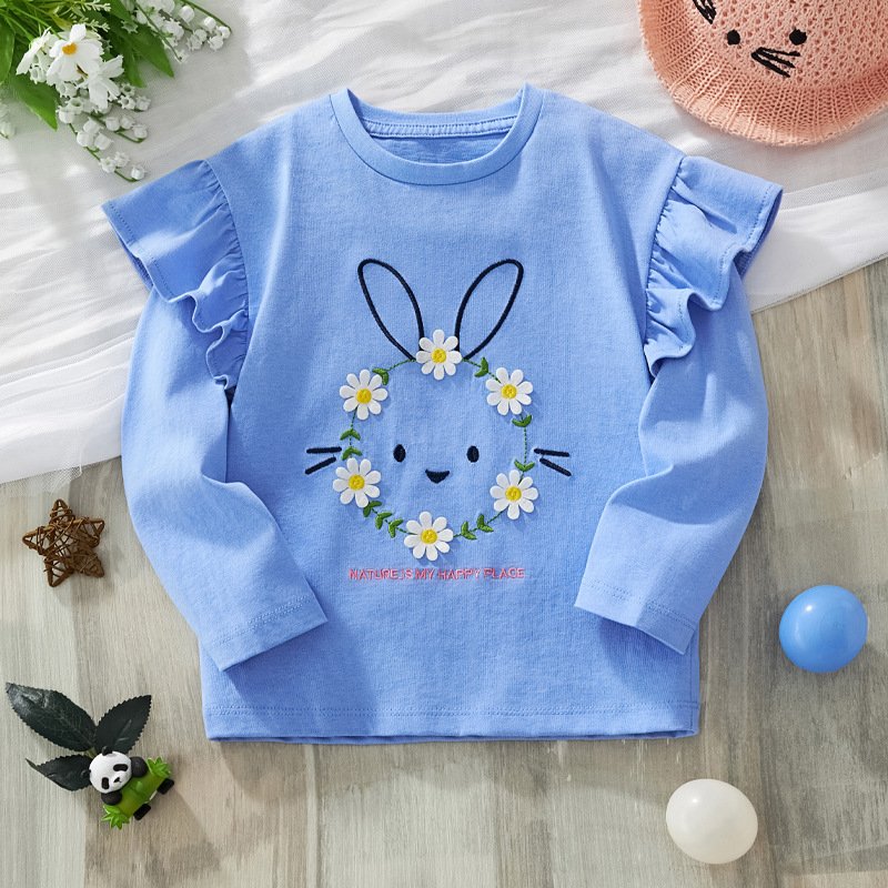 Kids Girls Fashion Cartoon Autumn And Winter Embroidered Long-Sleeve T-Shirt