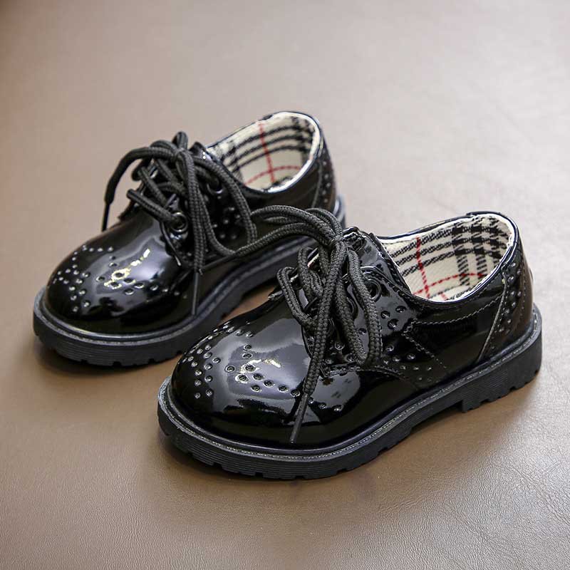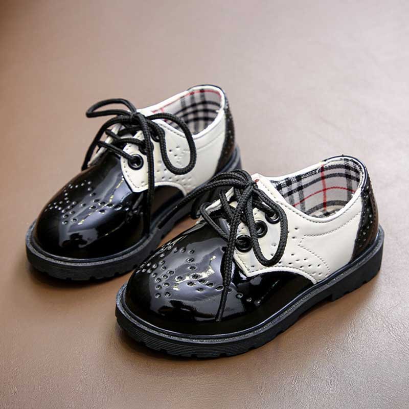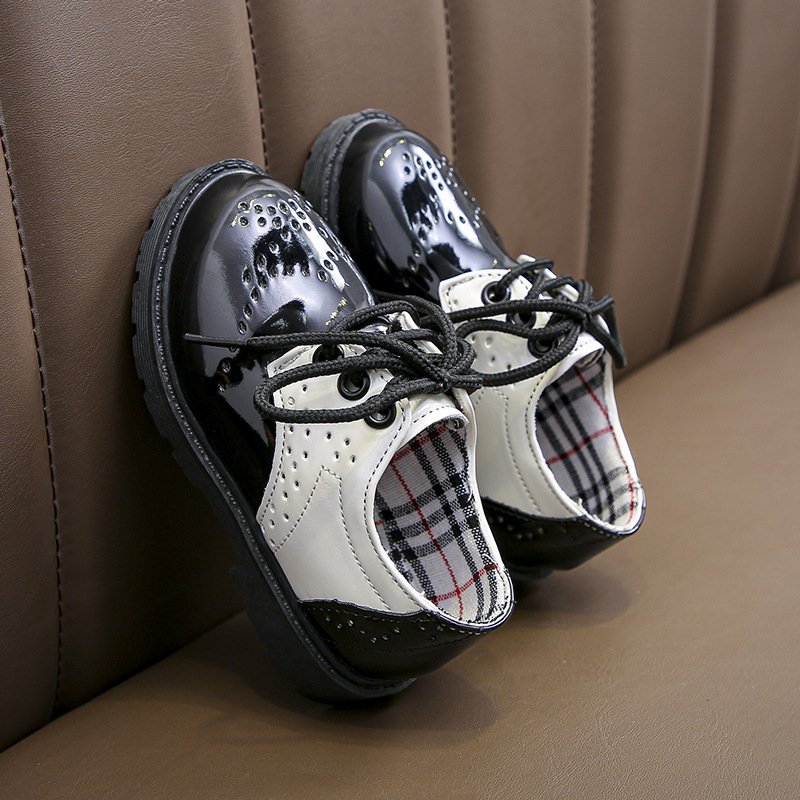Kids Girls Fashion Casual British Style Color Matching Round-Toe Slip On PU Leather Shots