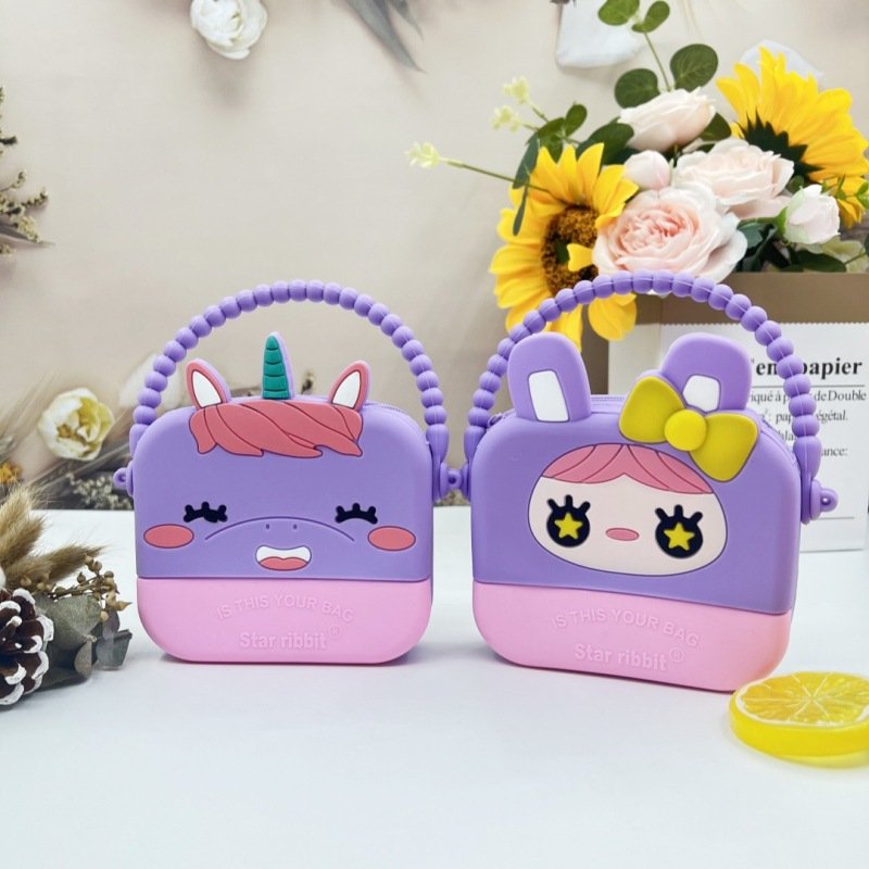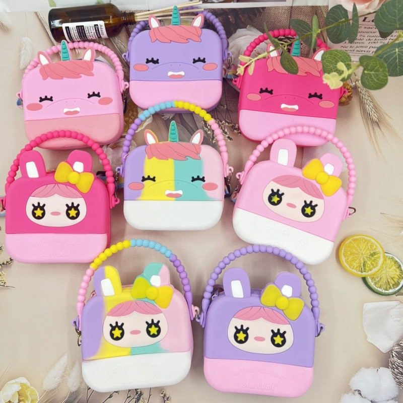 Kids Girls Fashion Casual Cute Cartoon Candy Color Silicone Crossbody Bag