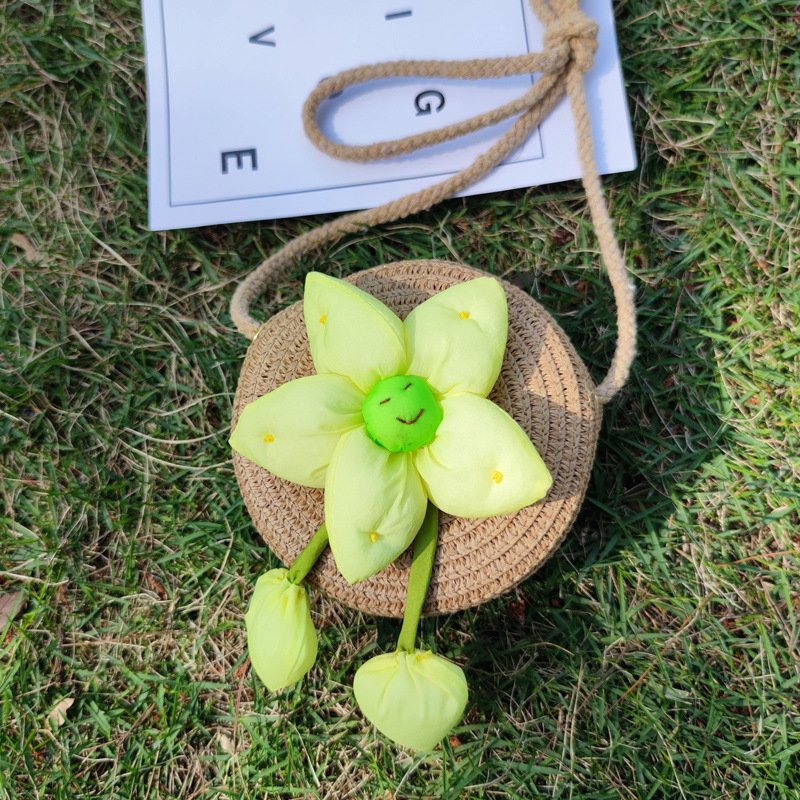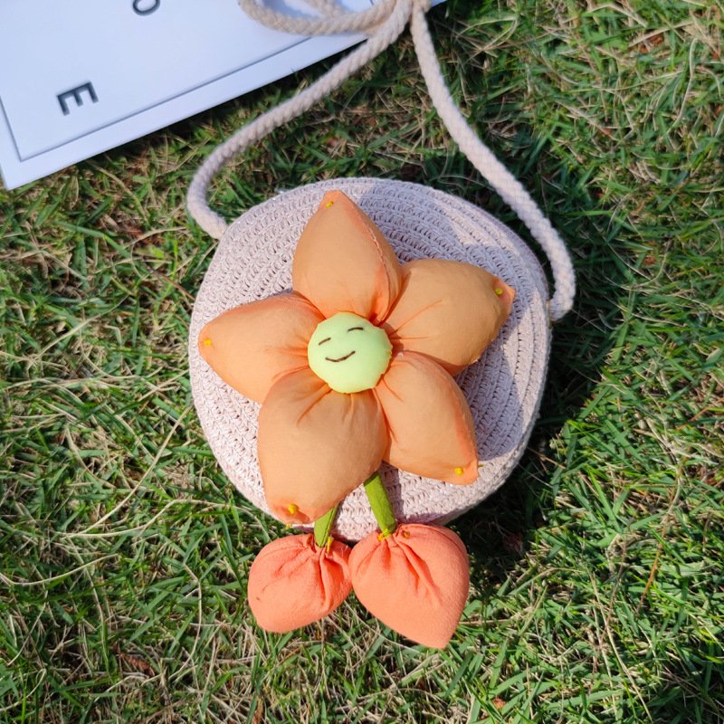 Kids Girls Fashion Casual Cute Floral Decorations Straw Woven Crossbody Bag