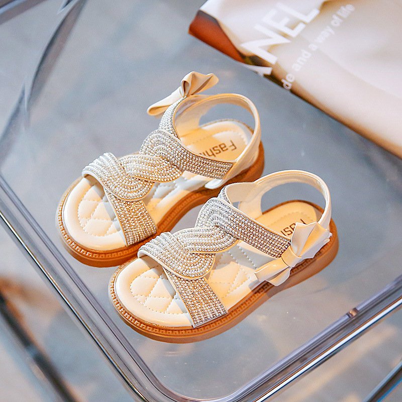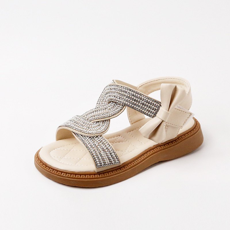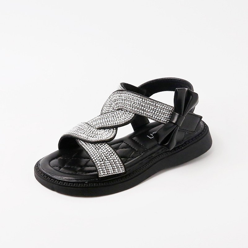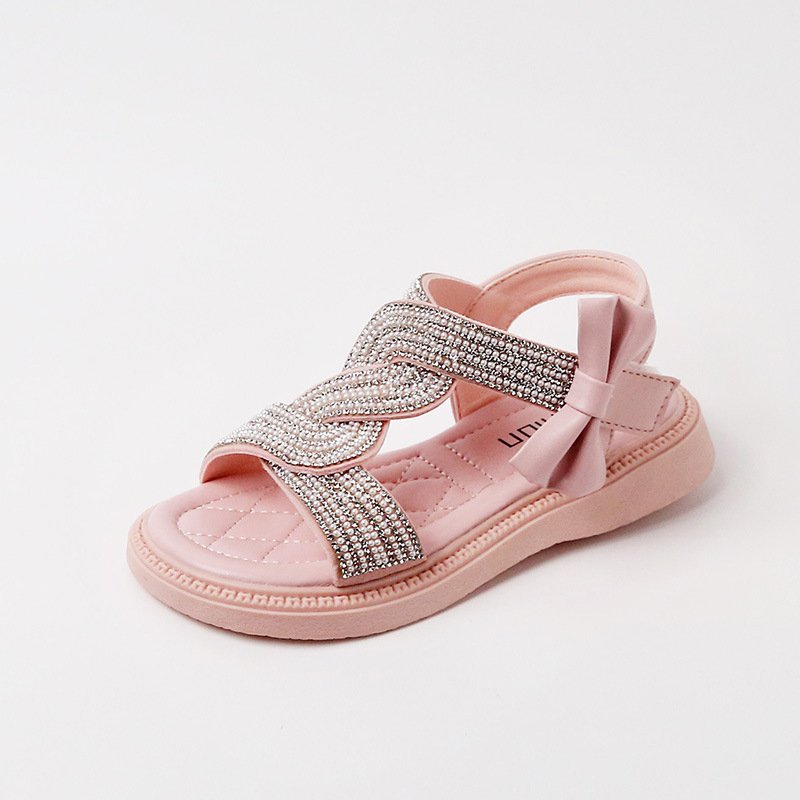 Kids Girls Fashion Casual Cute Sequins Bow Velcro Flat Sandals