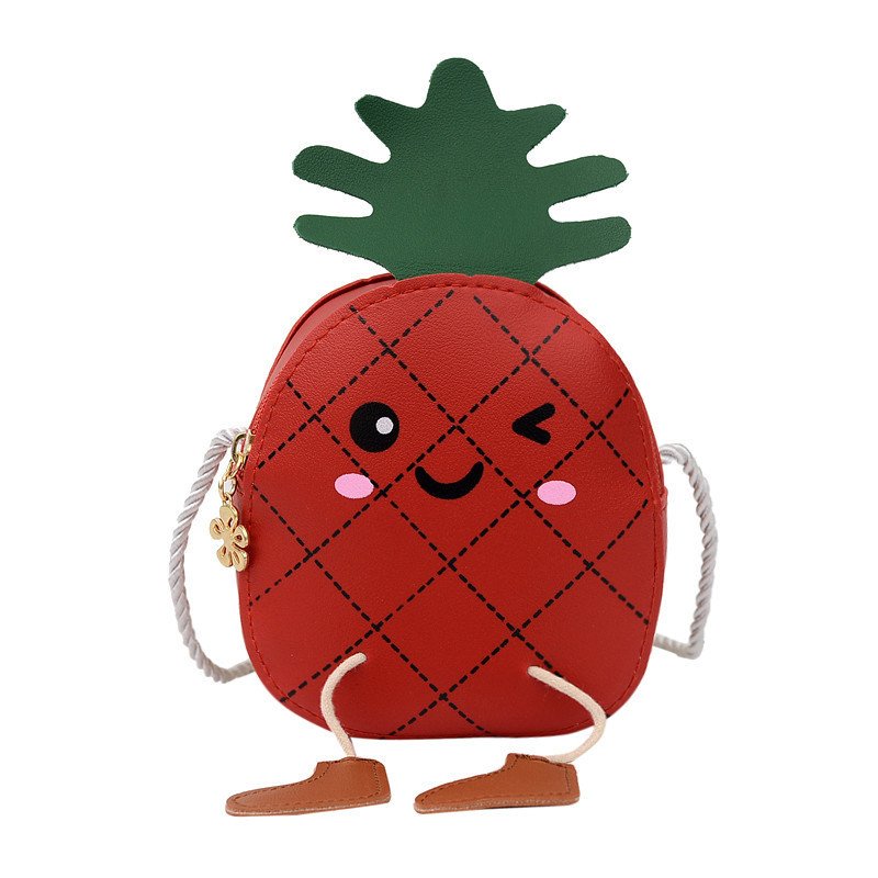 Kids Girls Fashion Casual Cute Solid Color Cartoon Pineapple PU Zipper Crossbody Bag