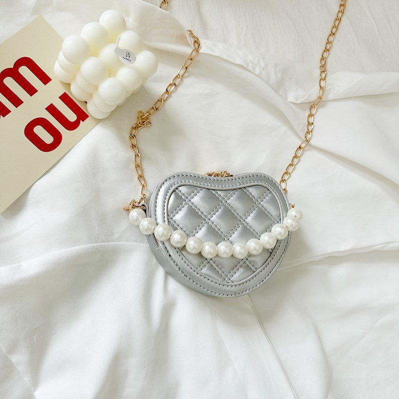 Kids Girls Fashion Casual Cute Solid Color Heart Crossbody Handle Bag