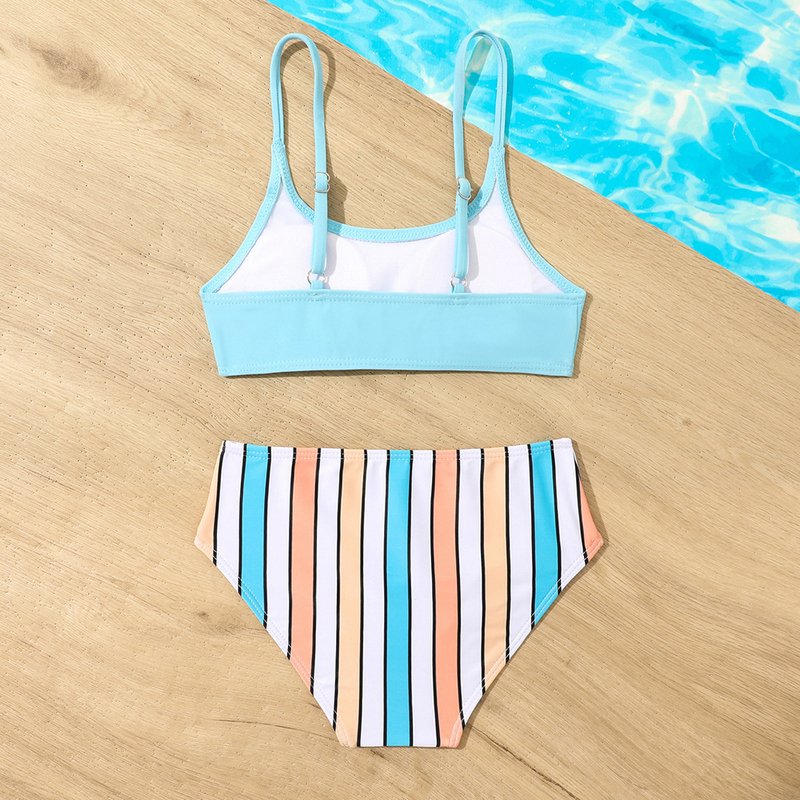 Kids Girls Fashion Casual Cute Stripe Print Tankinis Swimwear