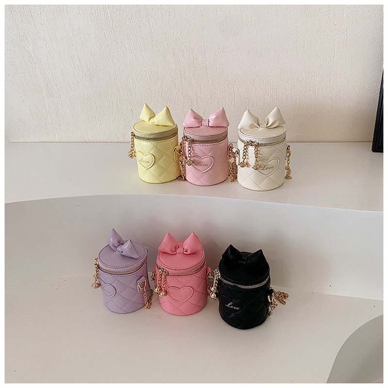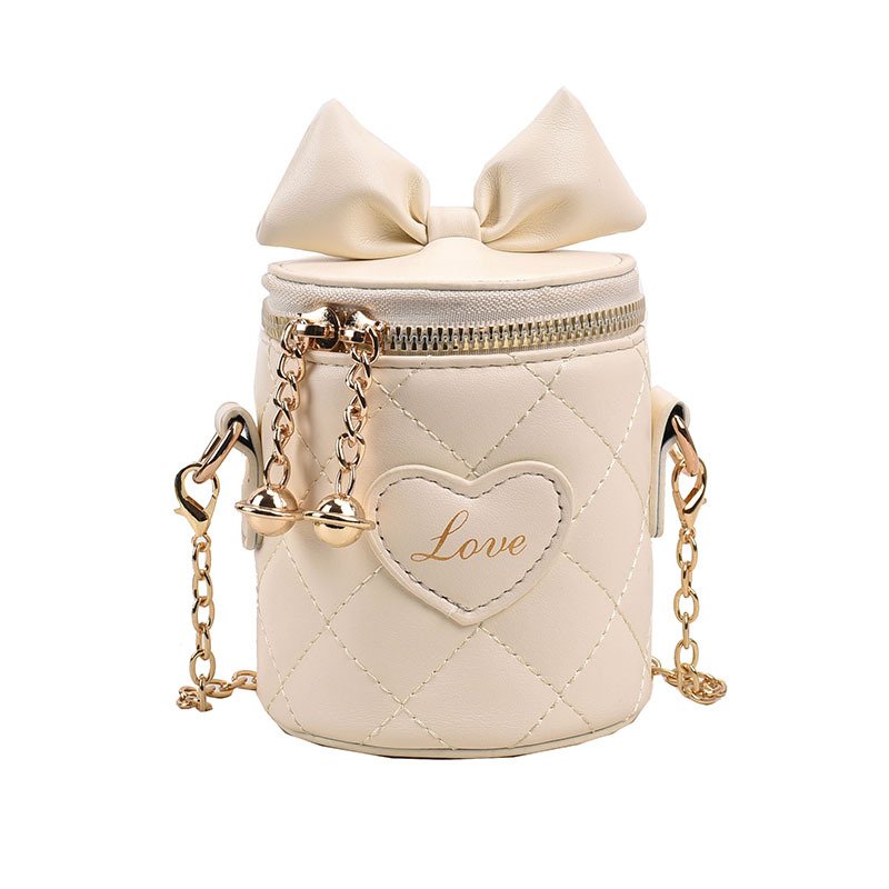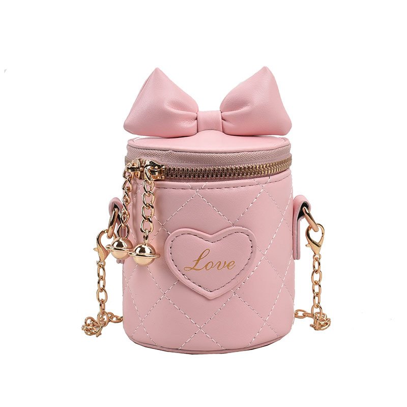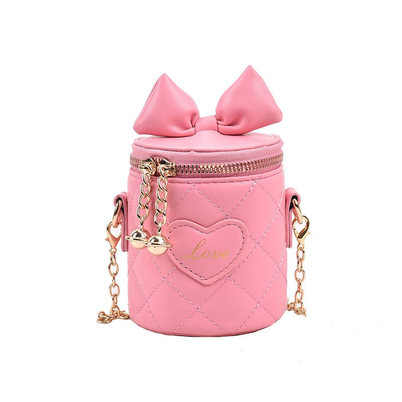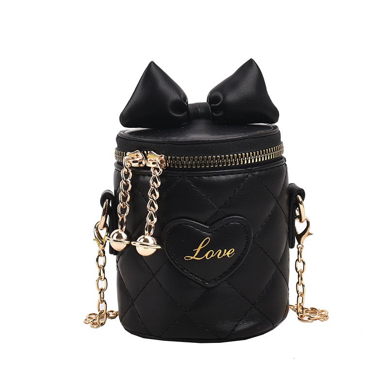 Kids Girls Fashion Chic Bow Quilted PU Crossbody Bucket Bag