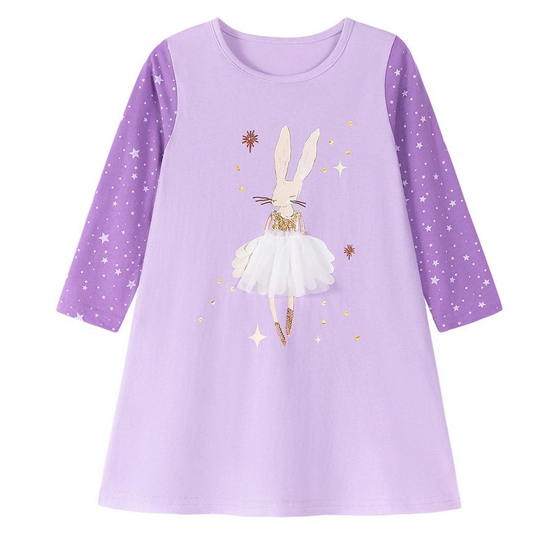 Kids Girls Fashion Cute Cartoon Printed Autumn Long-Sleeve Dress