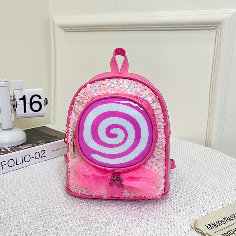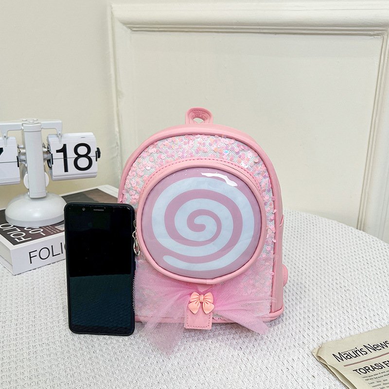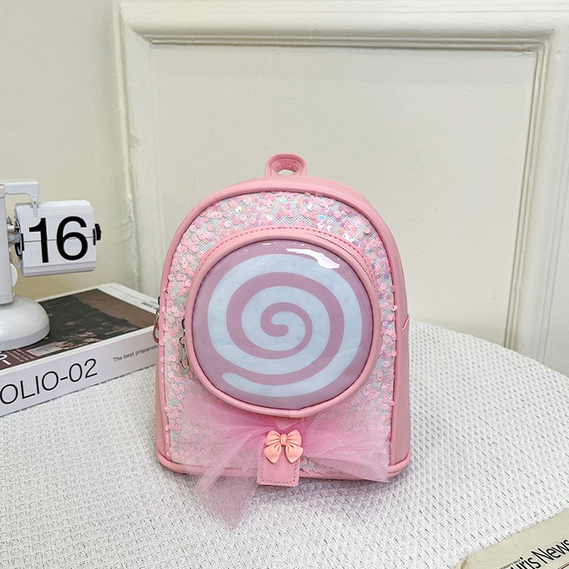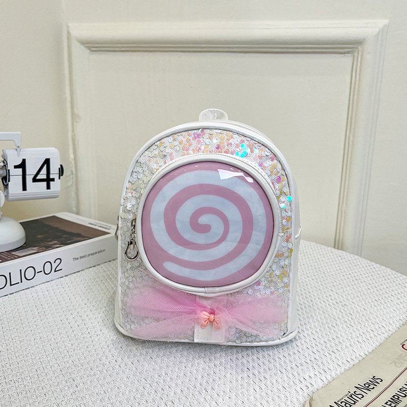 Kids Girls Fashion Cute Casual Bow Cartoon Lollipop Sequin Zipper Backpack Bag