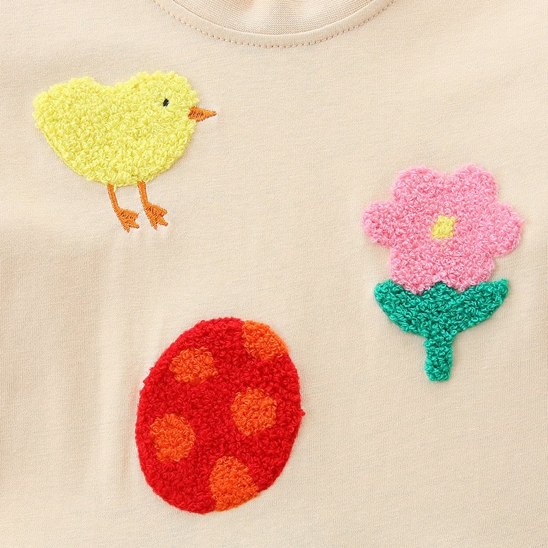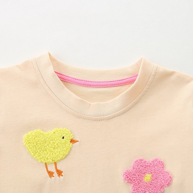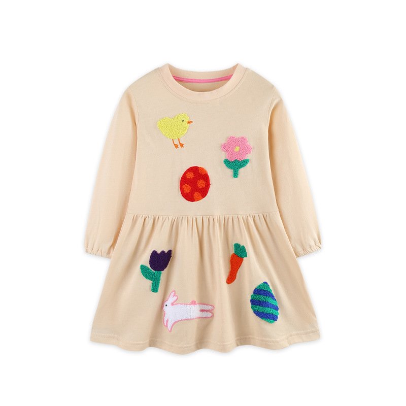 Kids Girls Fashion Cute Floral Embroidered Round-Neck Long Sleeve Cotton Dress