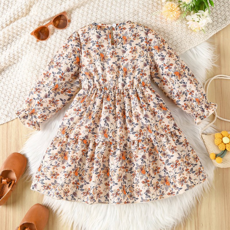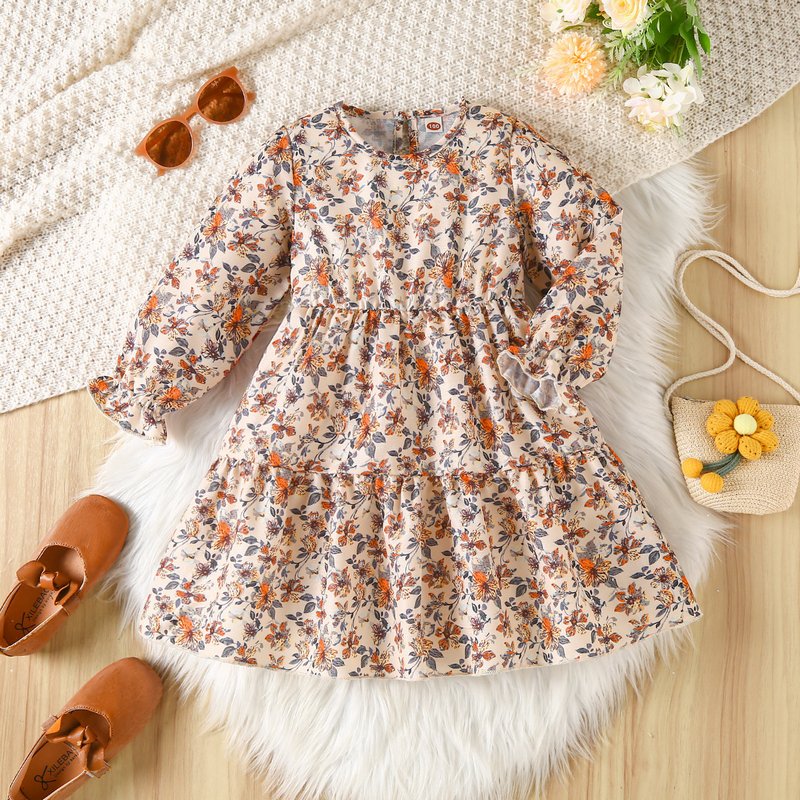 Kids Girls Fashion Cute Floral Printed Puffy Sleeve Dress