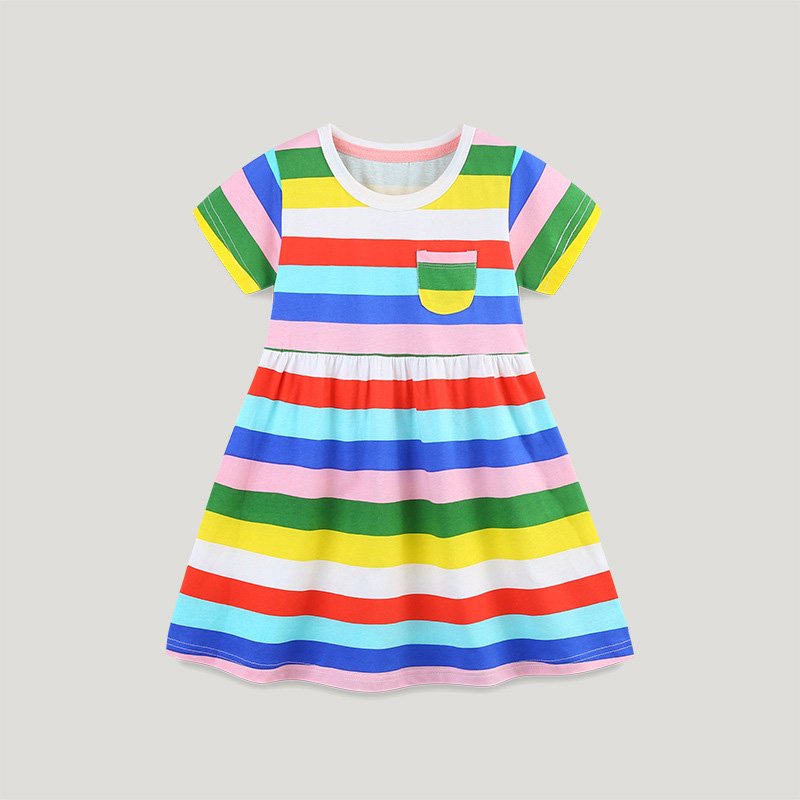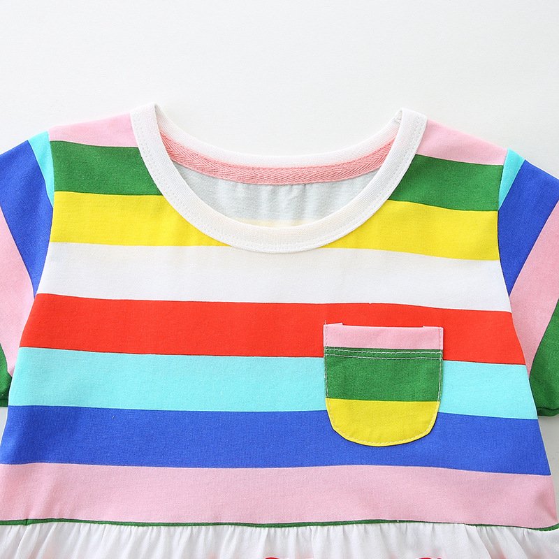 Kids Girls Fashion Rainbow Print Short-Sleeve Loose Dress
