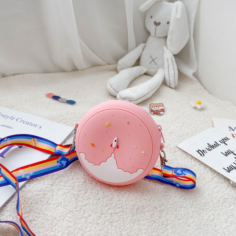 Kids Girls Fashion Sweet Candy Color Banana Strawberry Rainbow Rocket Silicone Mini Crossbody Bag