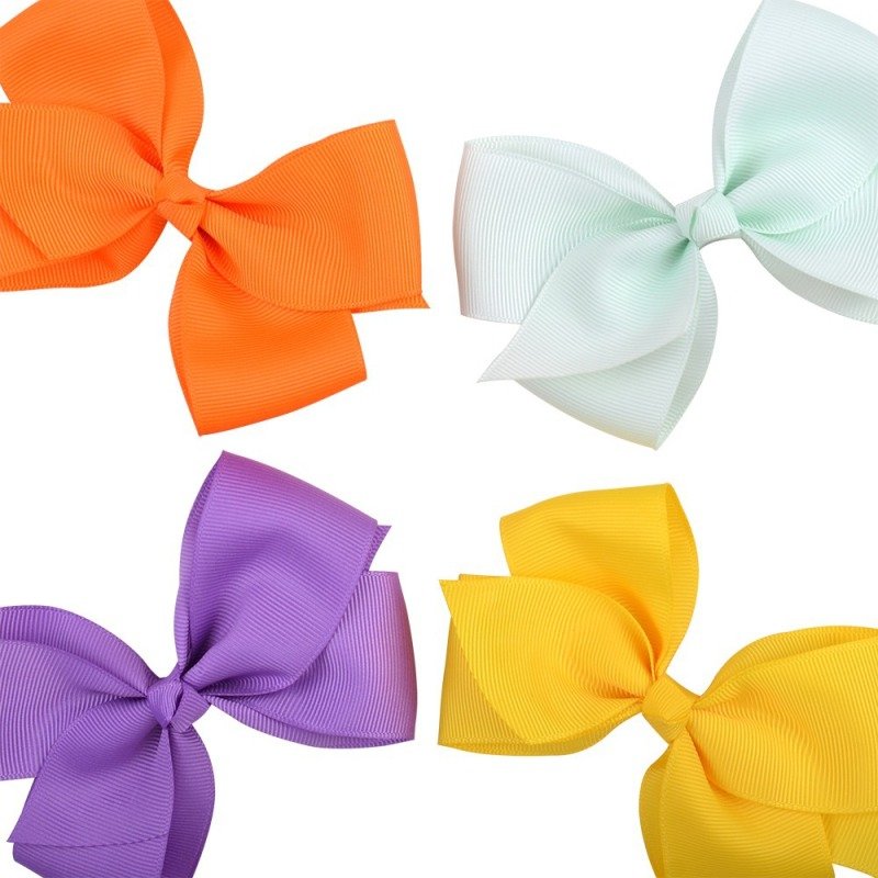 Kids Girls Fashion Sweet Candy Color Solid Color Rib Bow Duckbill Hairpin Accessories