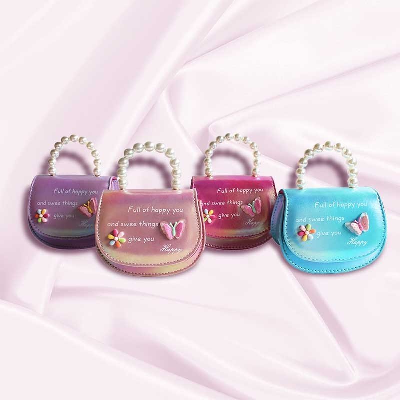 Kids Girls Fashion Sweet Cute Gradient Color Butterfly Letter Print Crossbody Bag